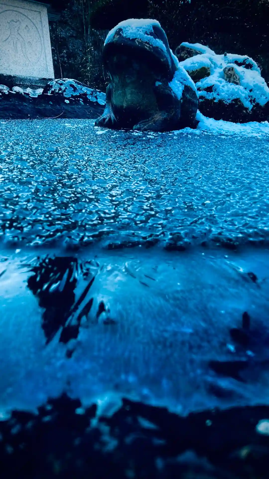 庭園の池が凍りました🧊