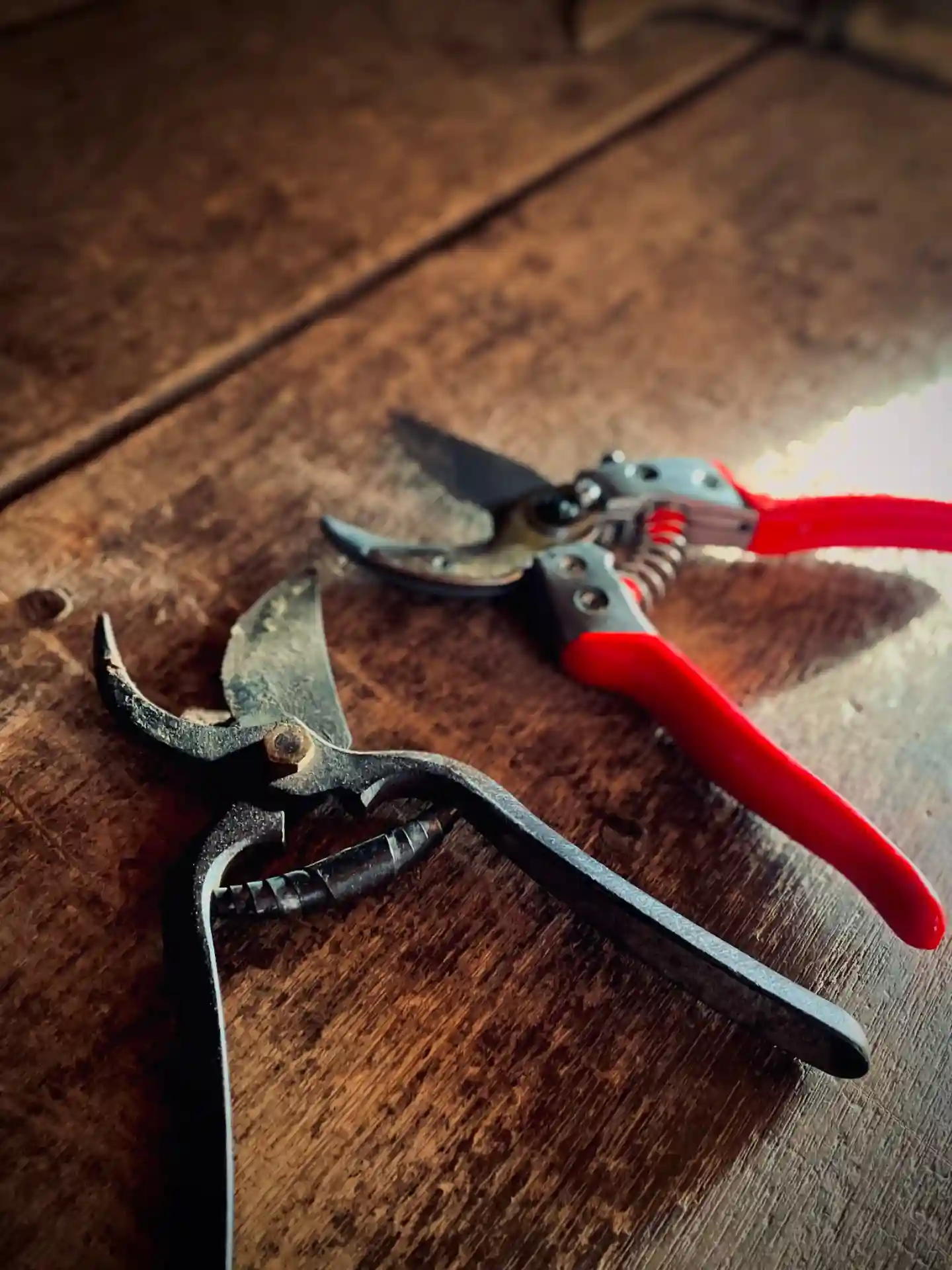 ※赤色のグリップが今風の剪定鋏