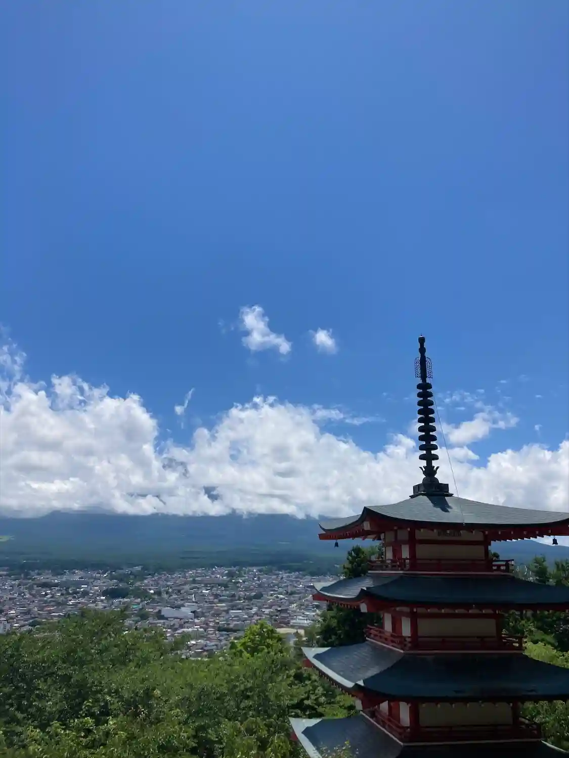 言わずと知れた、富士山と五重塔の絶景が見れる神社。絶景をみるには急な階段を登らないと見られない。