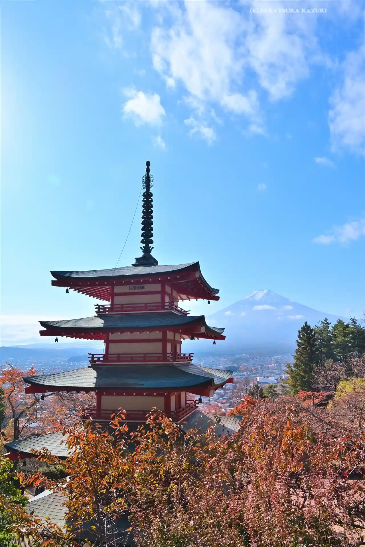 富士山と紅葉と五重塔という贅沢なコラボは唯一無二かと思います。