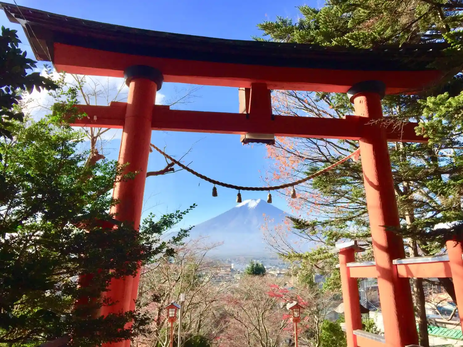 言わずと知れた、富士山と五重塔の絶景が見れる神社。絶景をみるには急な階段を登らないと見られない。
