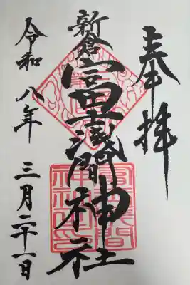 真ん中に新倉富士浅間神社と書かれ、社印が押された御朱印です。