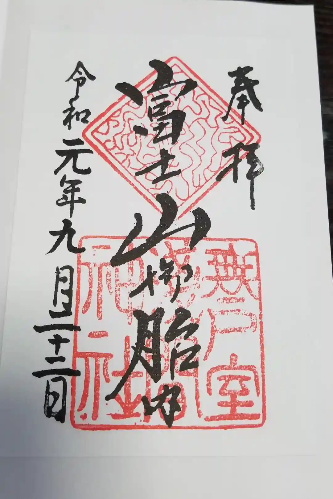 ![無戸室浅間神社(船津胎内神社)の御朱印]()
