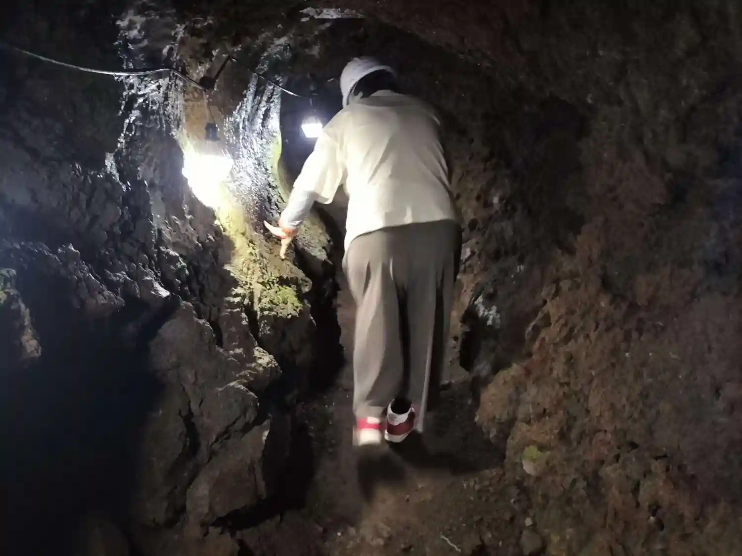 狭く頭上も低いので、屈んで前を進みます。頭をぶつけないように・・・