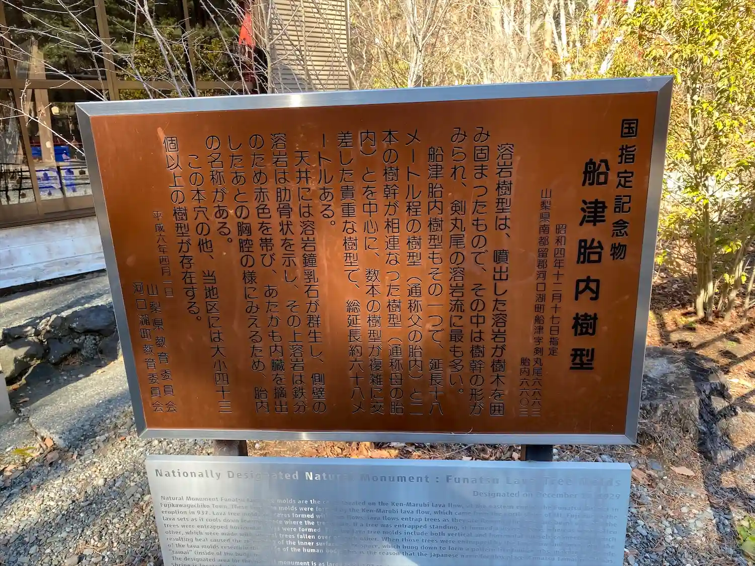 富士山の噴火によって燃えた樹木の跡が空洞化して洞窟となった船津胎内樹型の入り口にある無戸室浅間大社…