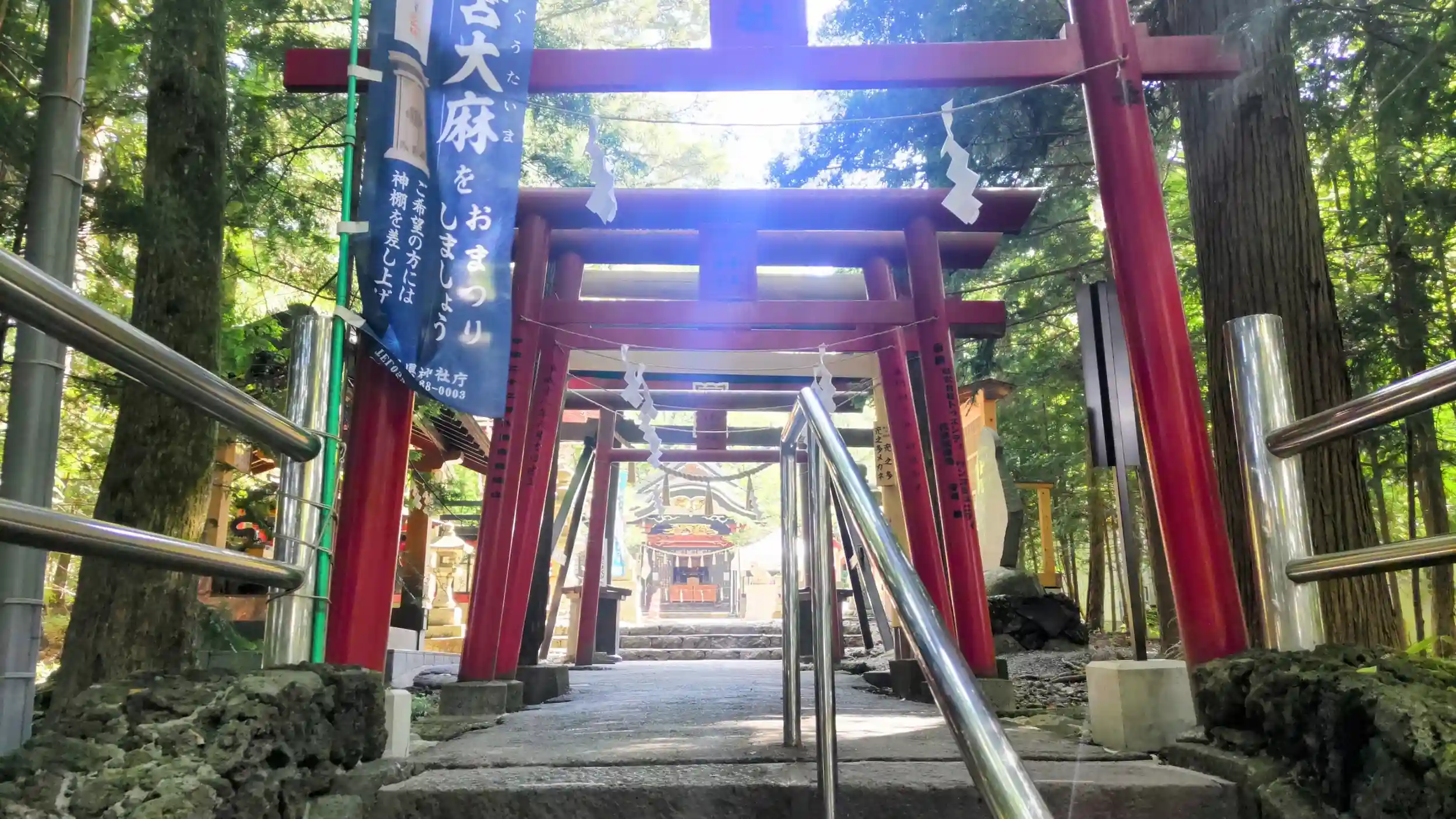 お稲荷さまかと思うくらいに鳥居が続く参道を通ってお詣りしました。鳥居の高さが低いので少し腰をかがめて通ることになります。