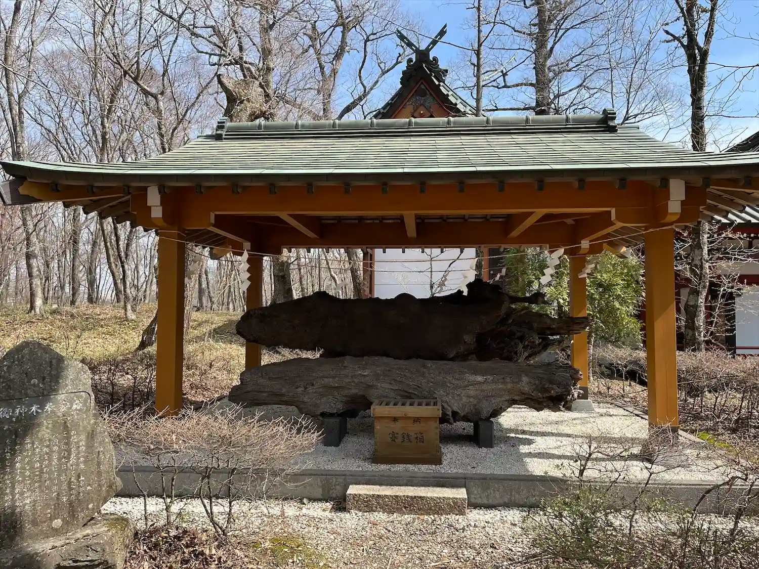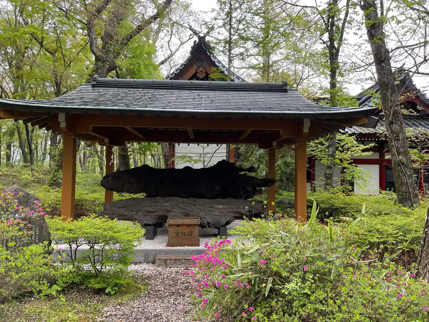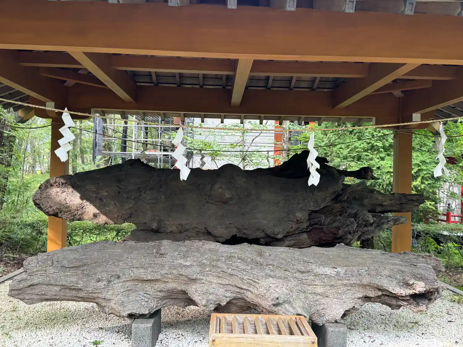 台風で倒れてしまった御神木の一部が祀られています✨