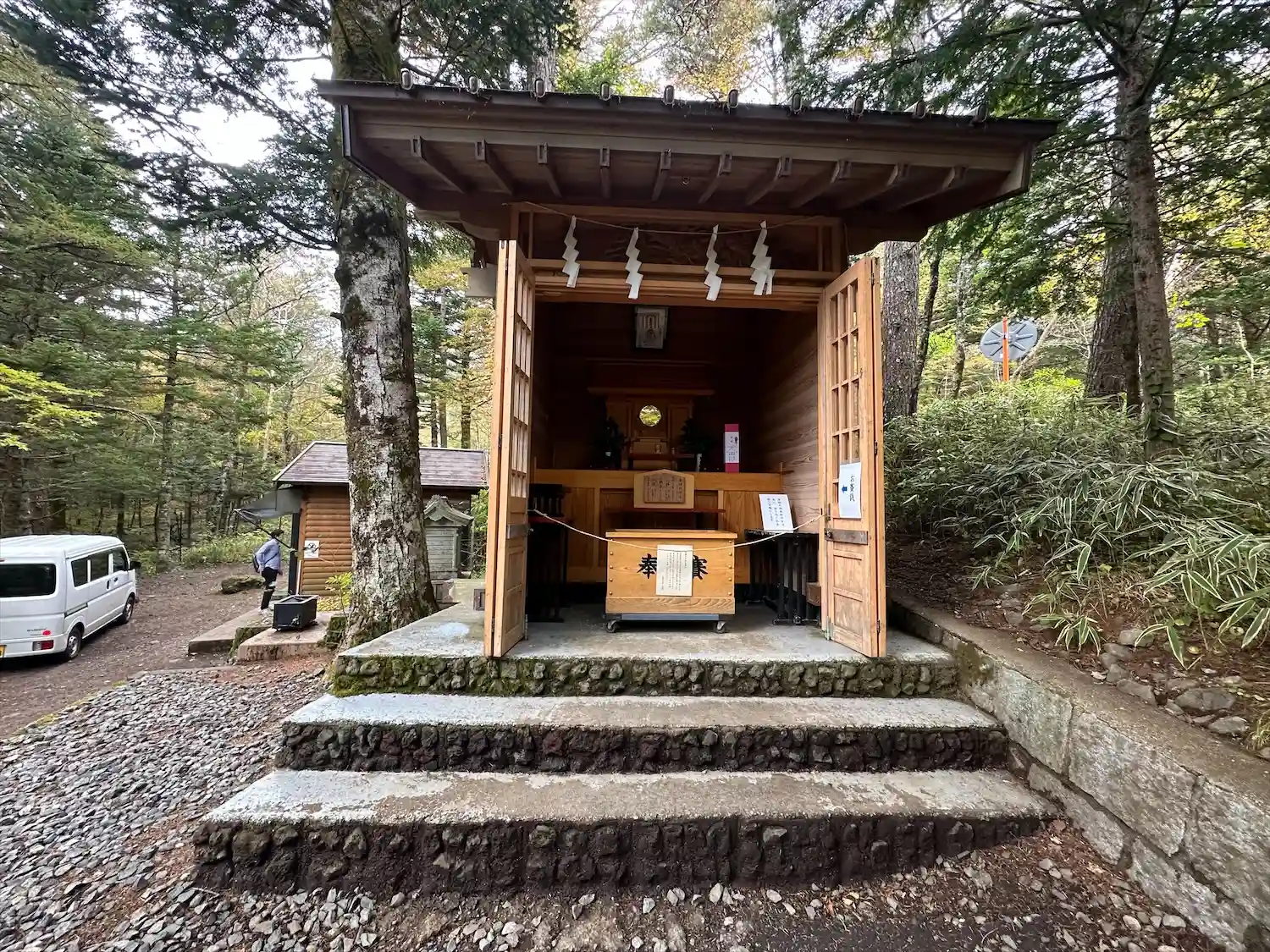 自分が訪れた際は、他の参拝者さんの車が前に停まっていて看板が見えず一度通り過ぎました…😅
