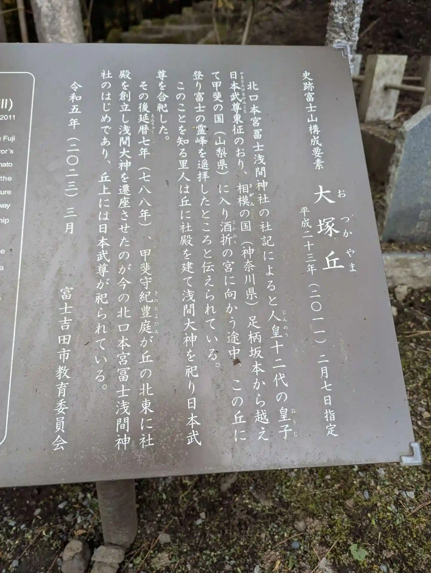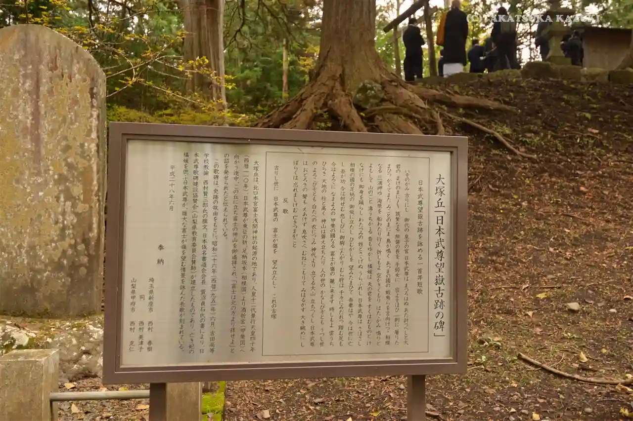 景行天皇の40年、西暦110年に日本武尊が東征の途中、大塚丘に立ち寄りました。そこで彼は富士山を見…