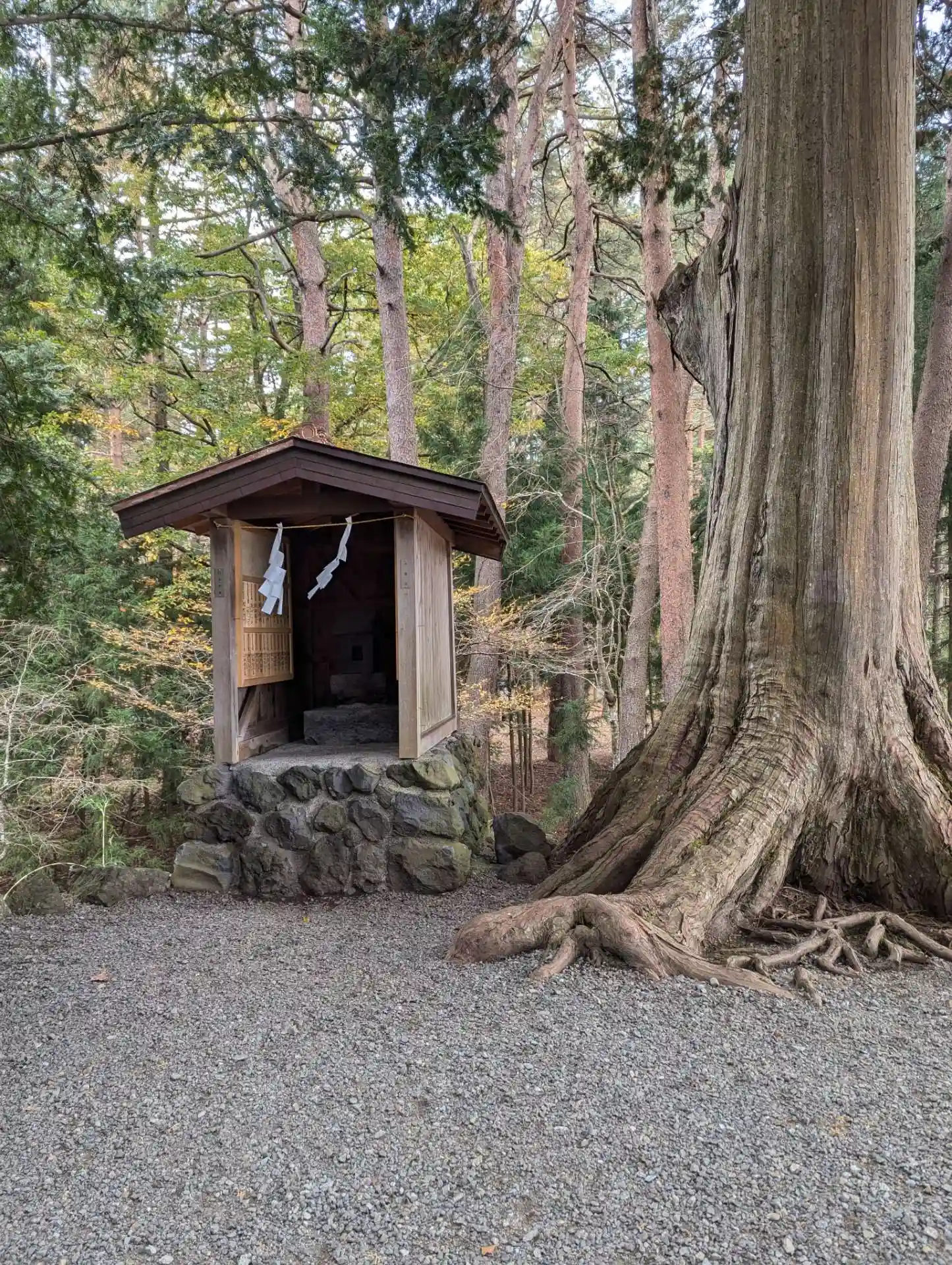 社殿とヒノキ