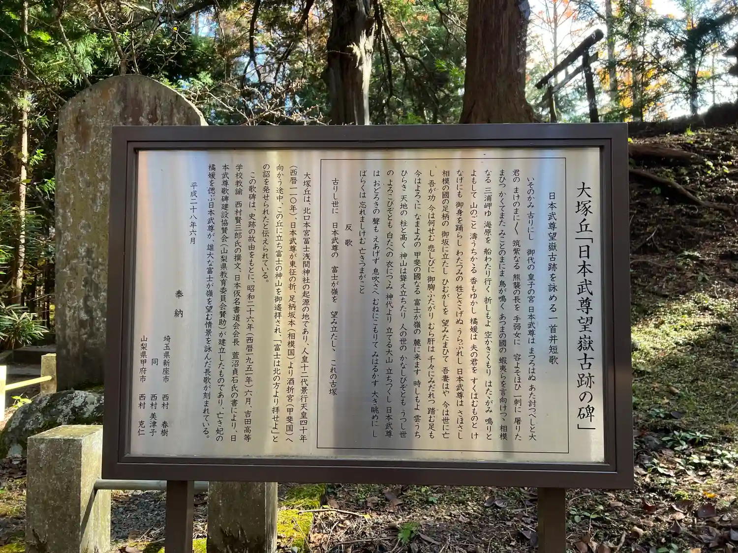 日本武尊命がここで富士山を拝んだそうですね!木々で富士山が見えませんが当時は見晴らしがよかったので…