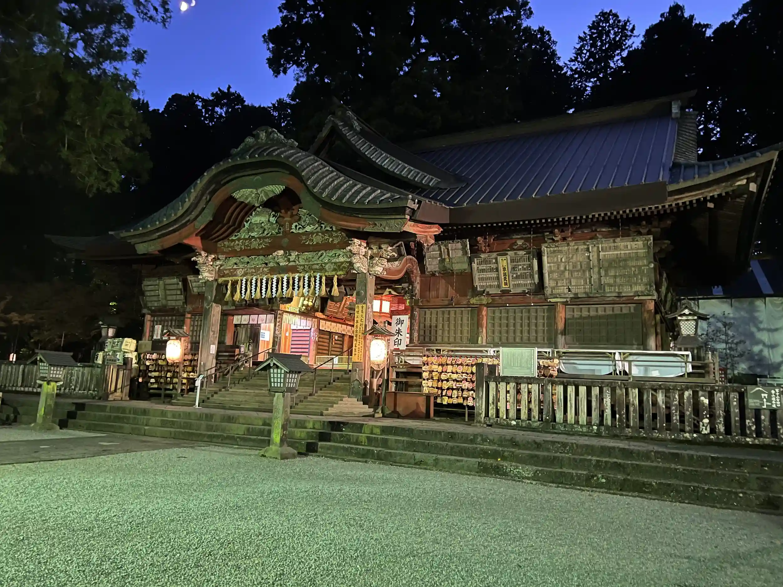 お互いに木花咲耶姫様のお導きで再会できたと認識があり、暗くなってましたが一緒に境内の摂社、末社を参拝させていただき、最後に月明かりに照らされた拝殿へ。