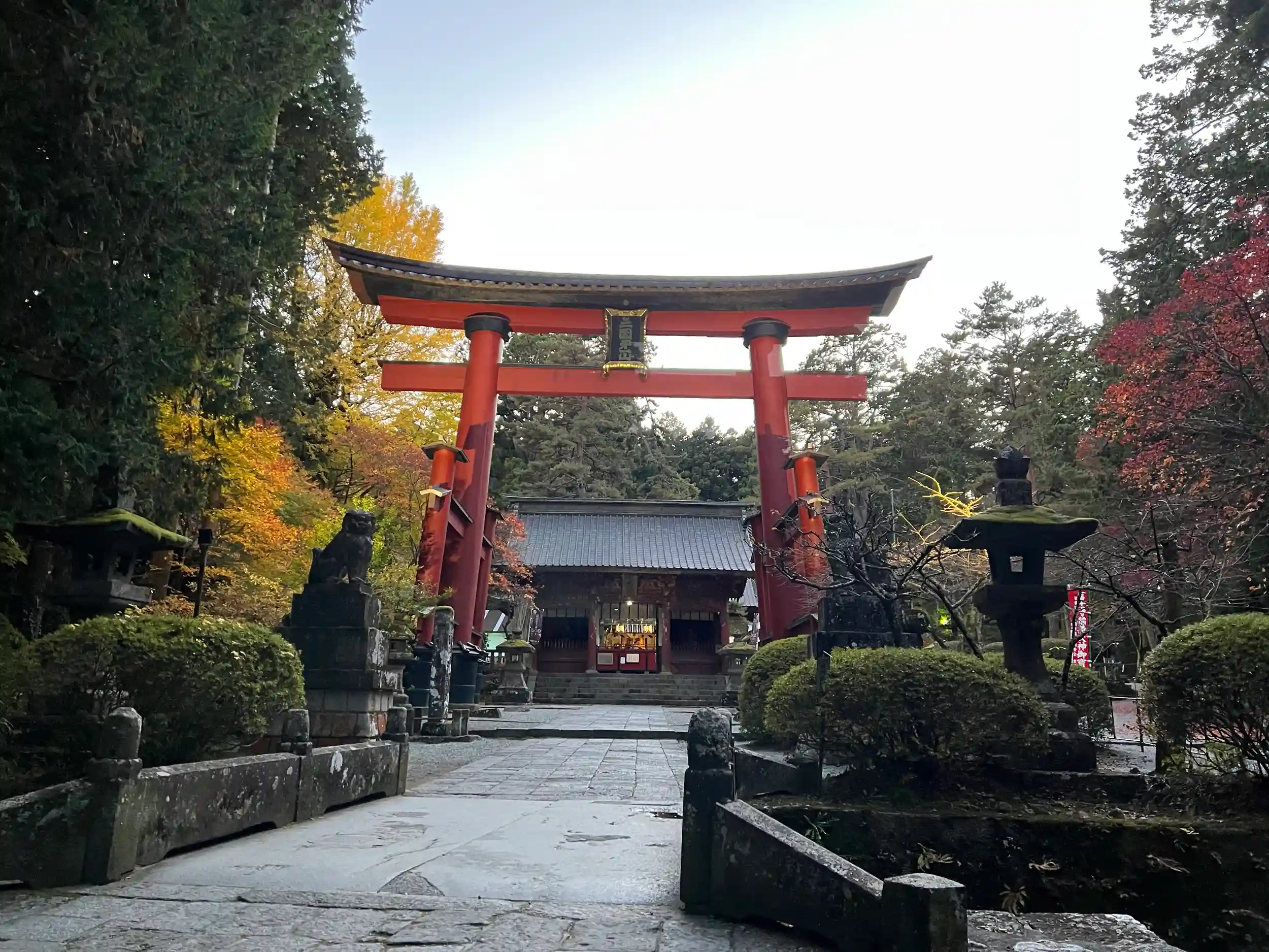 新倉富士浅間神社を出たのが17時少し前でしたので社務所は閉まってると思いましたが、何故か高速のインターに向かわず左折して最後に北口本宮冨士浅間神社を参拝することに。