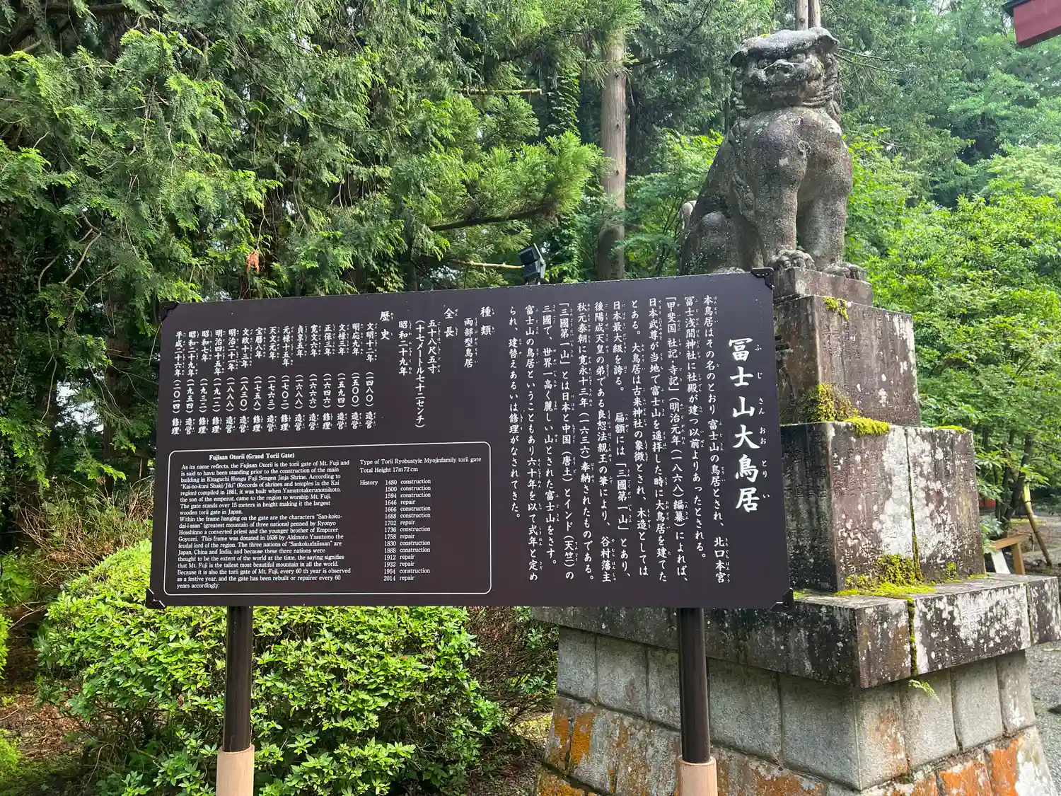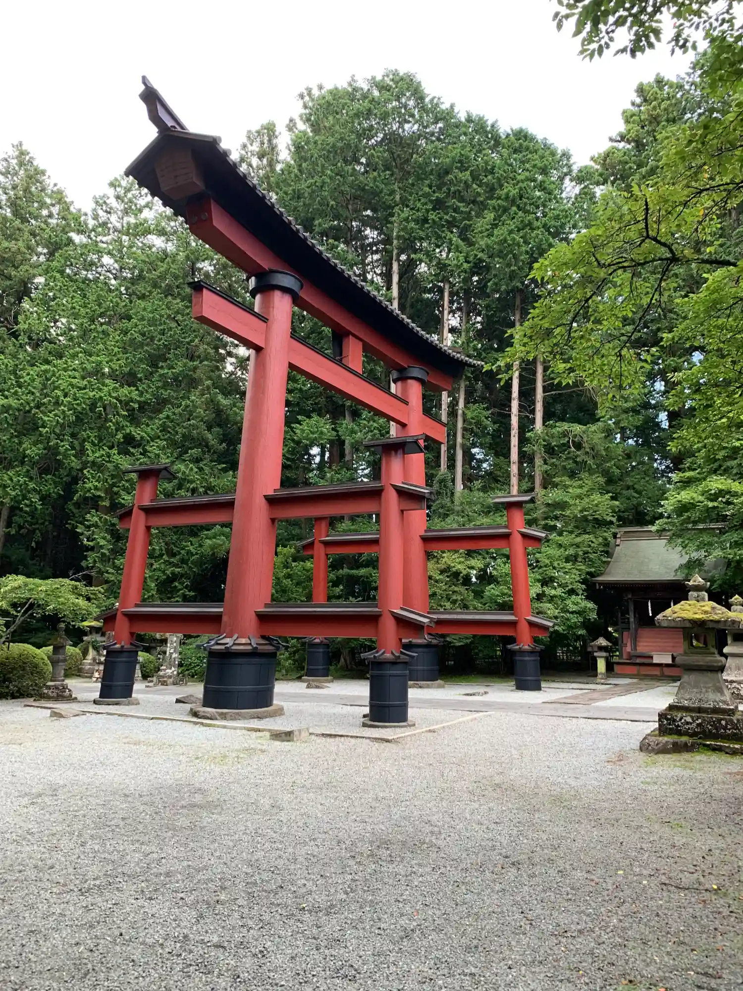 富士登山道吉田口の入り口に鎮座する富士山世界遺産の構成資産の一つの北口本宮富士浅間神社。周囲は石灯…