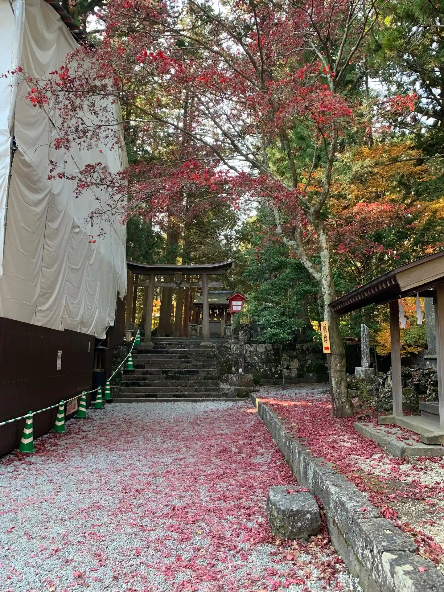 素敵な長い参道⛩️鳥居は修復中でした