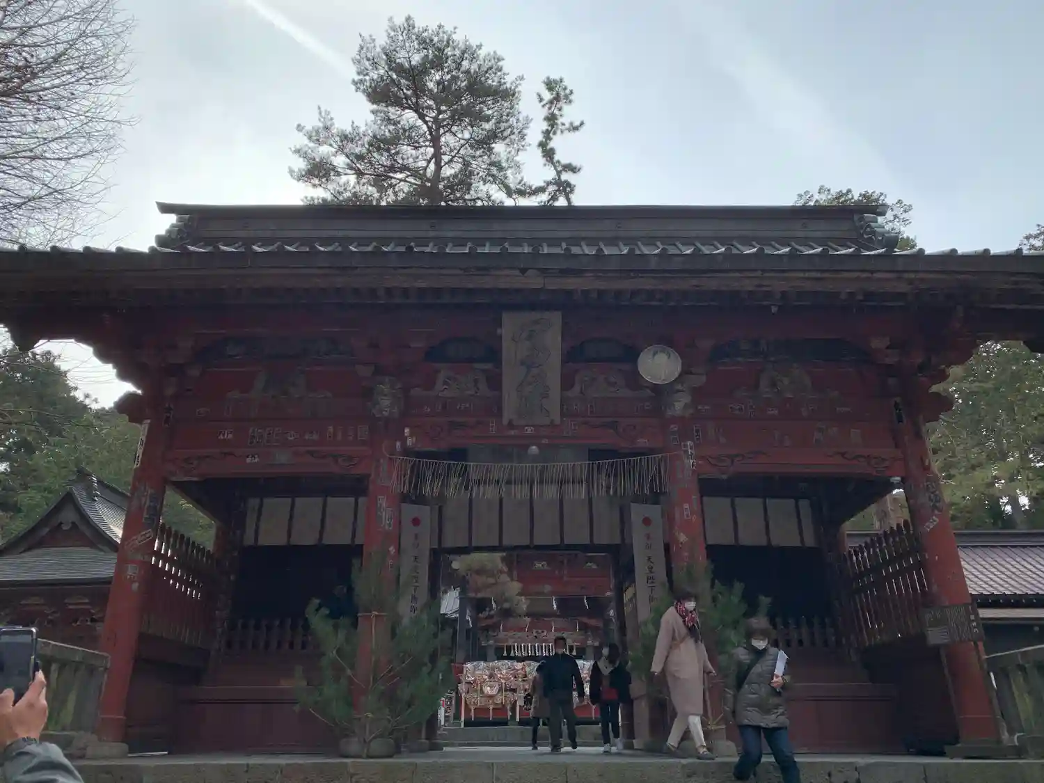 ひっきりなしに参拝客が通る中