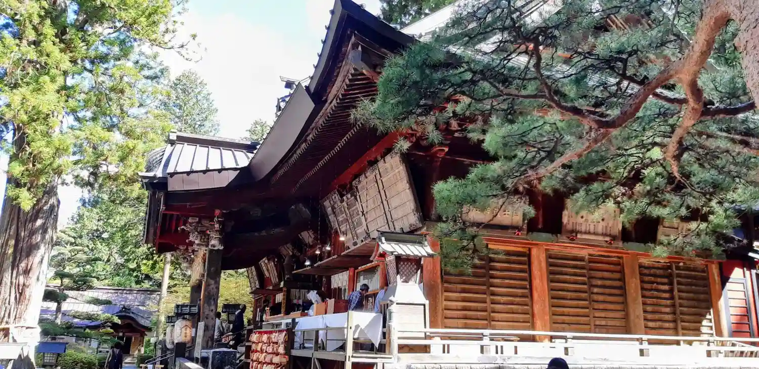 | 文化財 | 拝殿、手水舎、神楽殿、随神門、本殿、東宮、西宮、諏訪拝殿、社務所、冨士ゑびす(いずれも国指定重要文化財) |