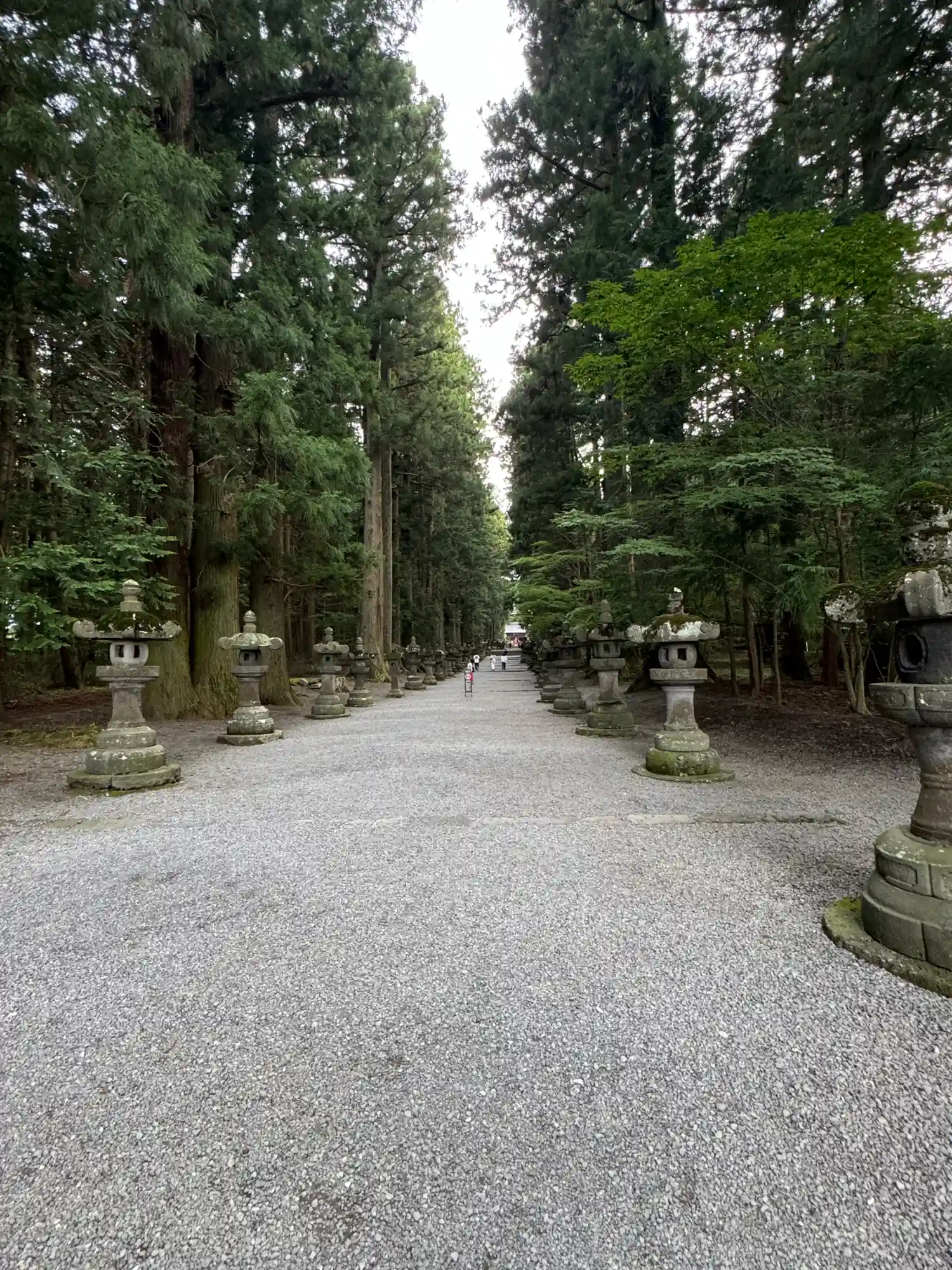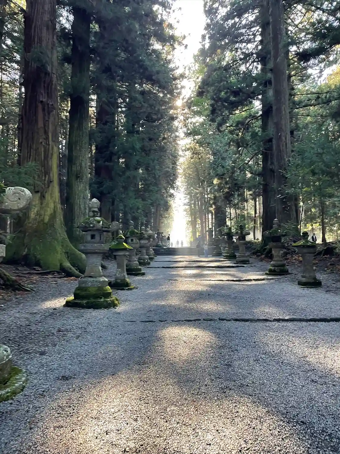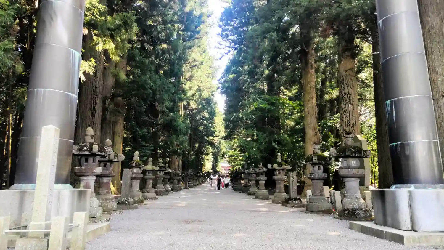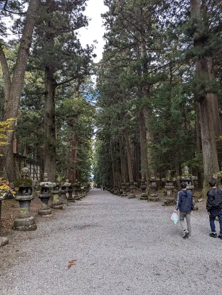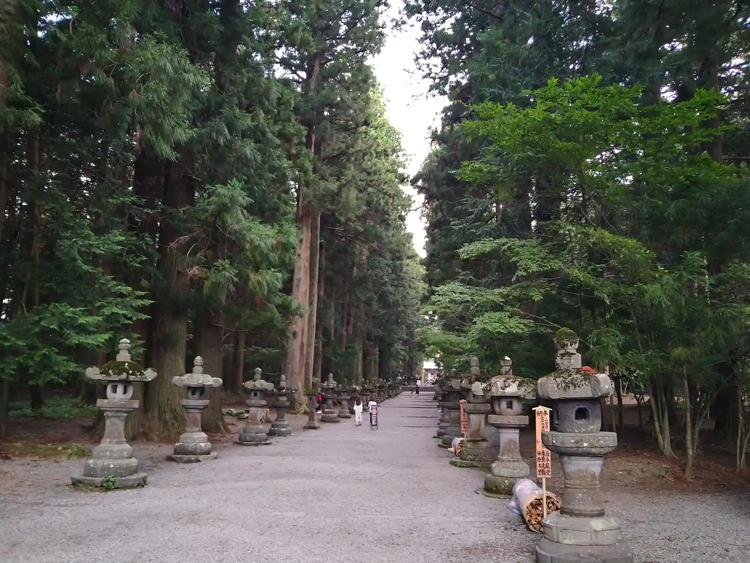 両側に杉の木が並び、その前に石灯籠がズラリとならんでいる。