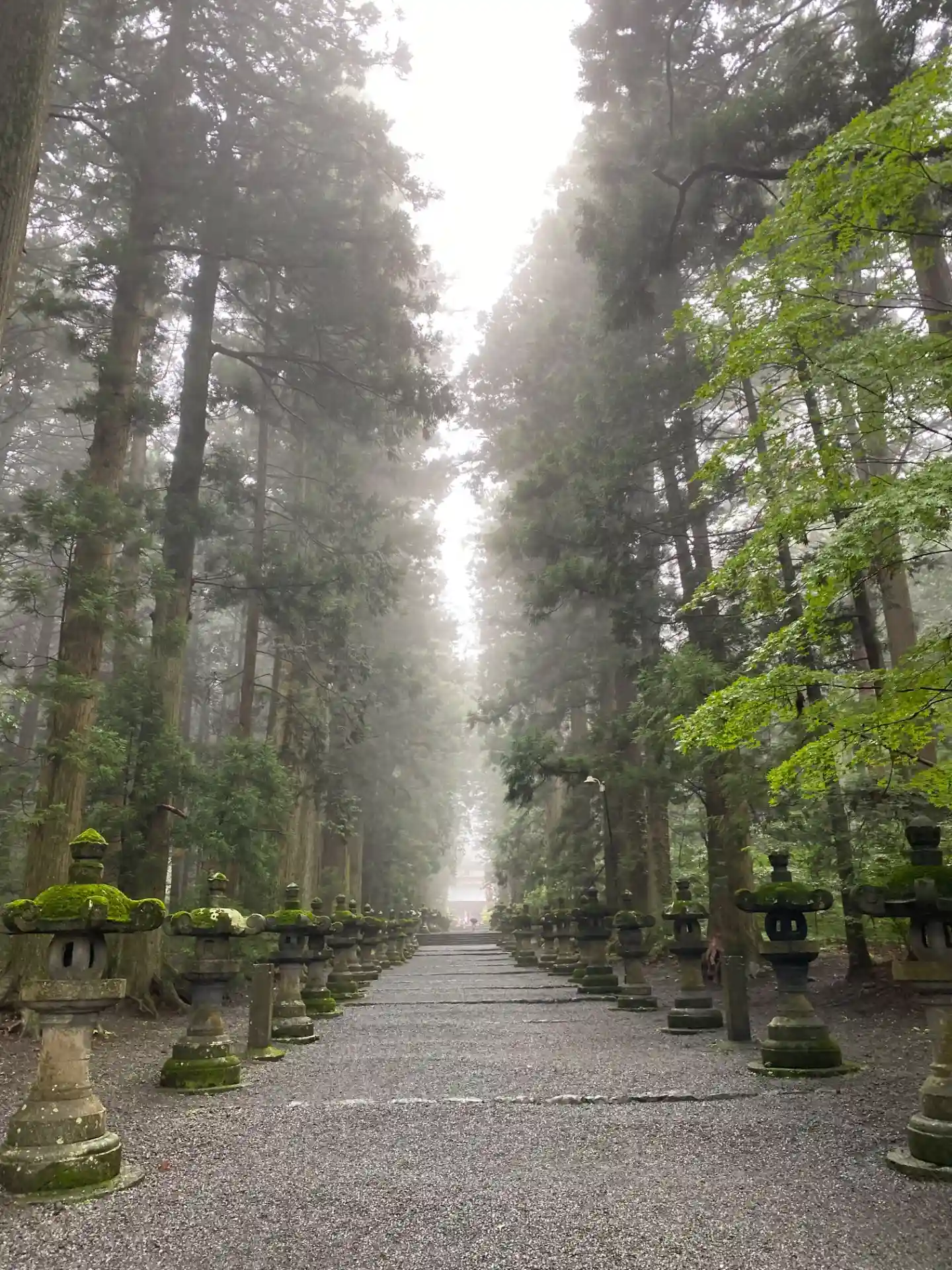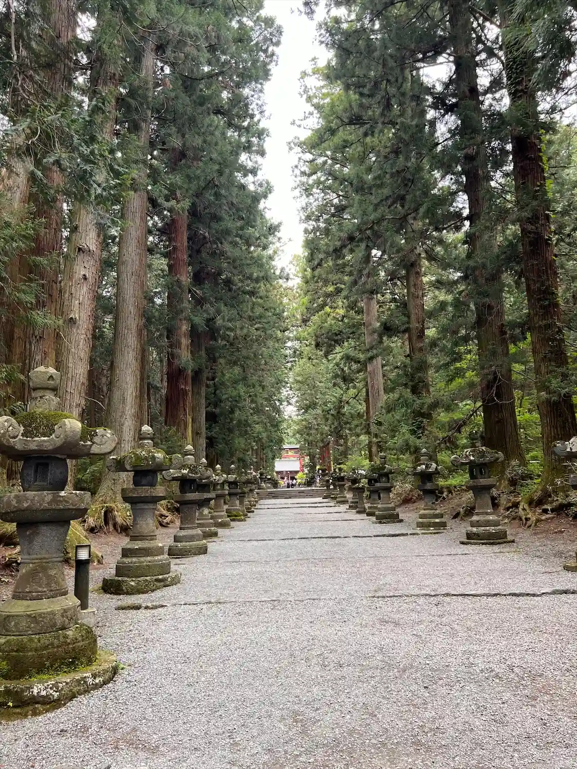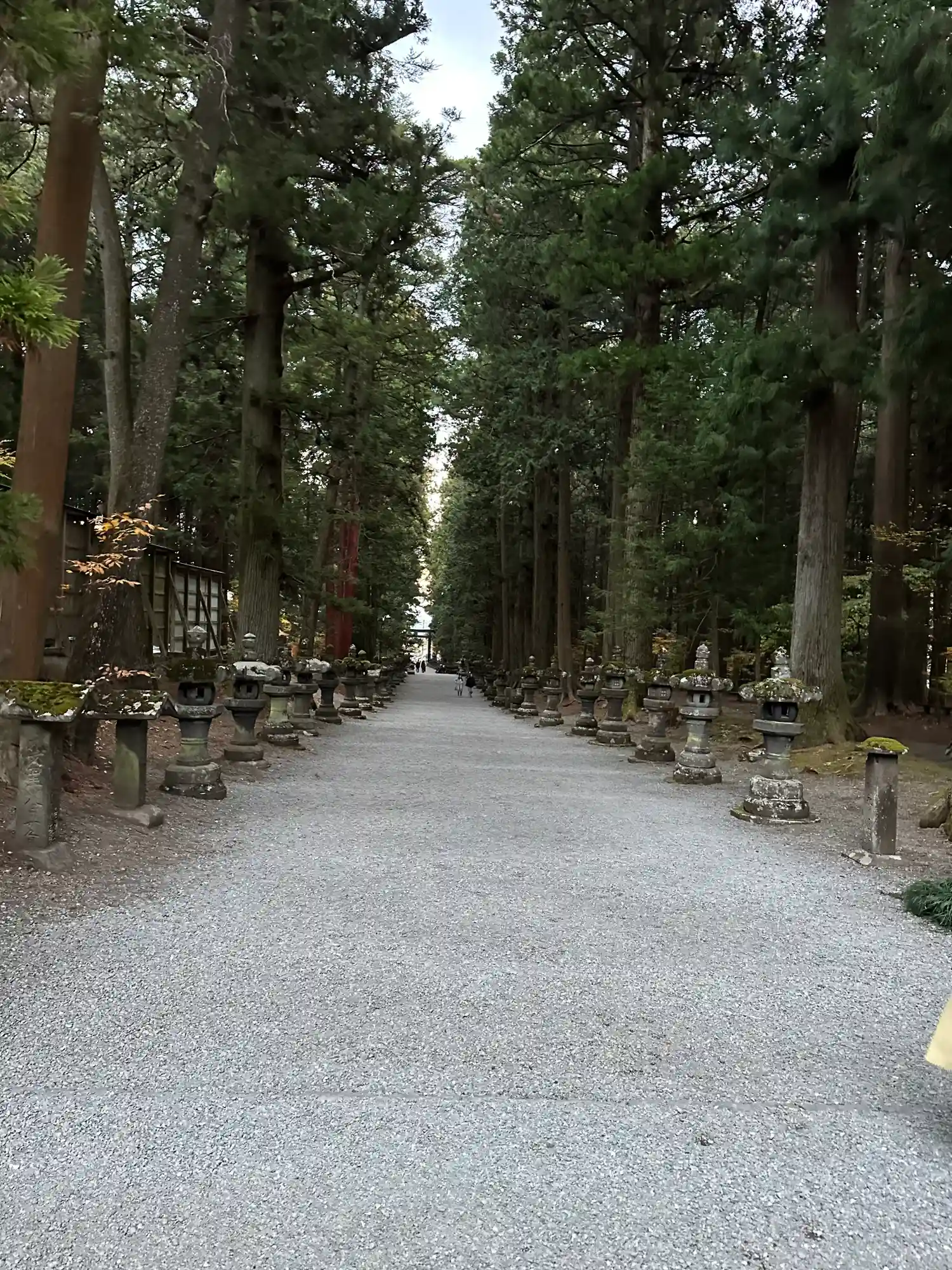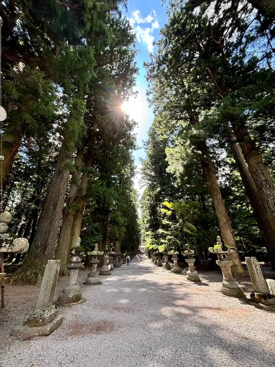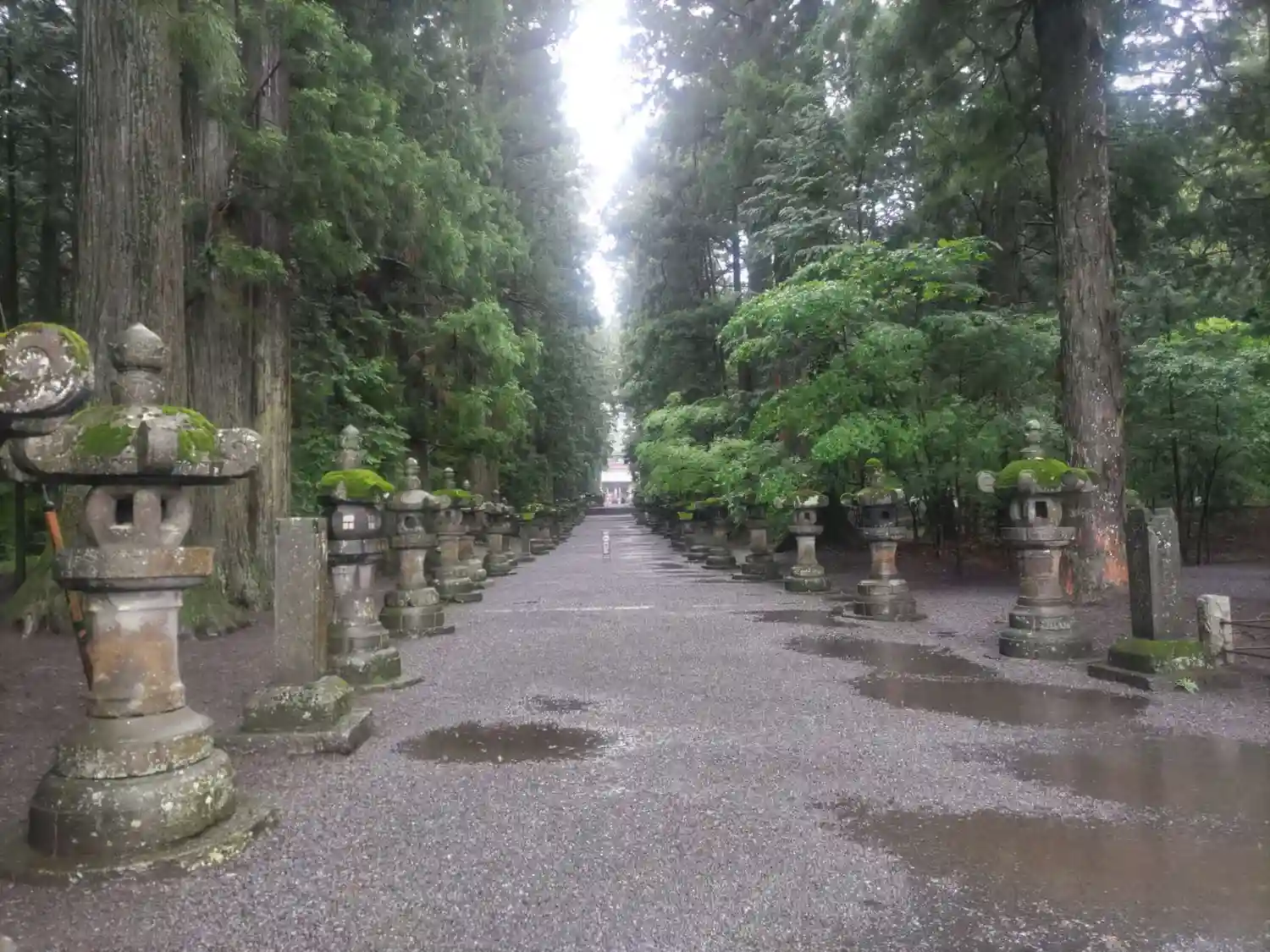 両側に杉の木が並び、その前に石灯籠がズラリとならんでいる。