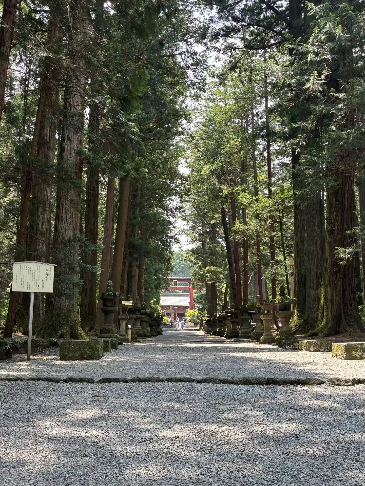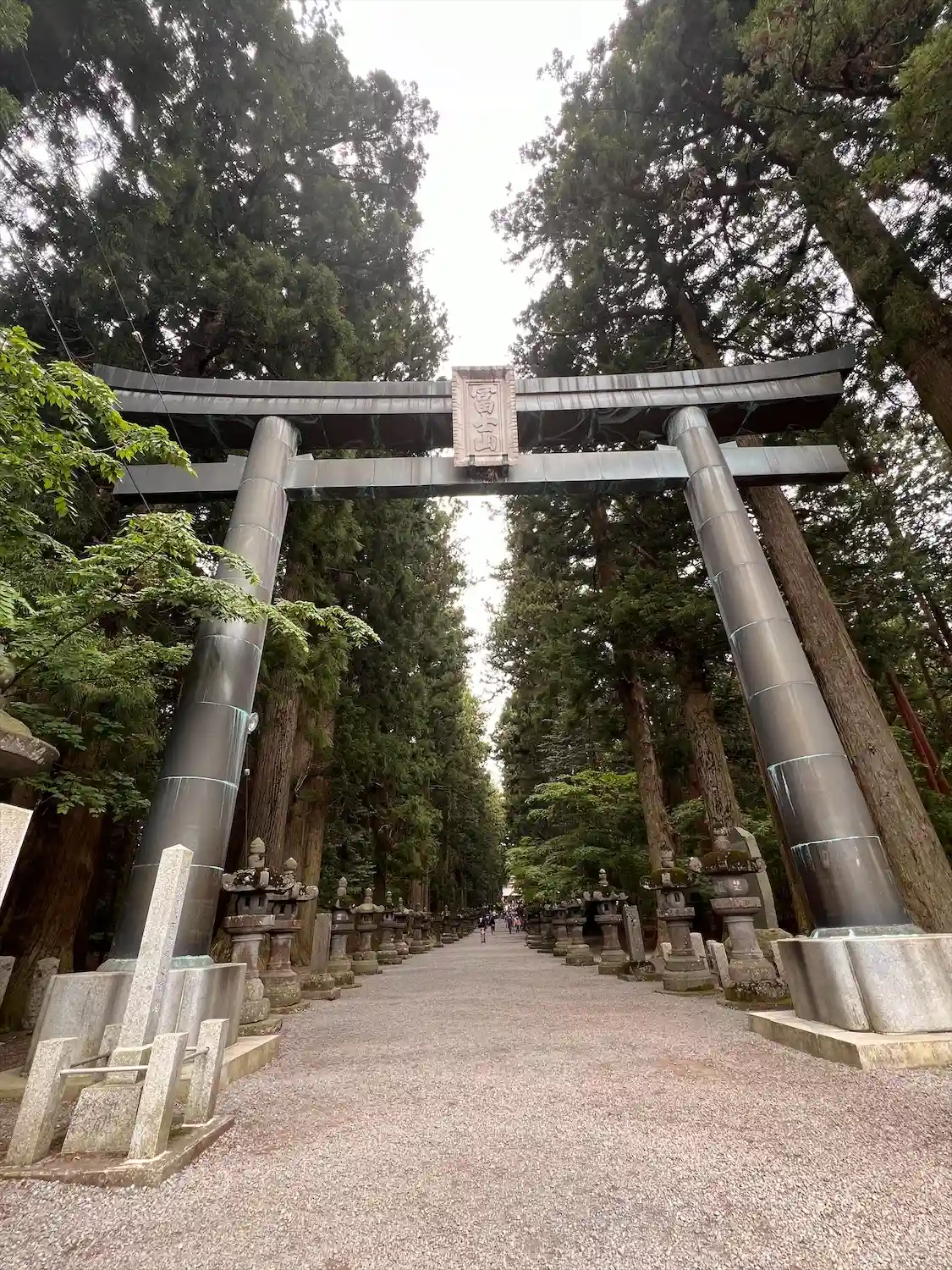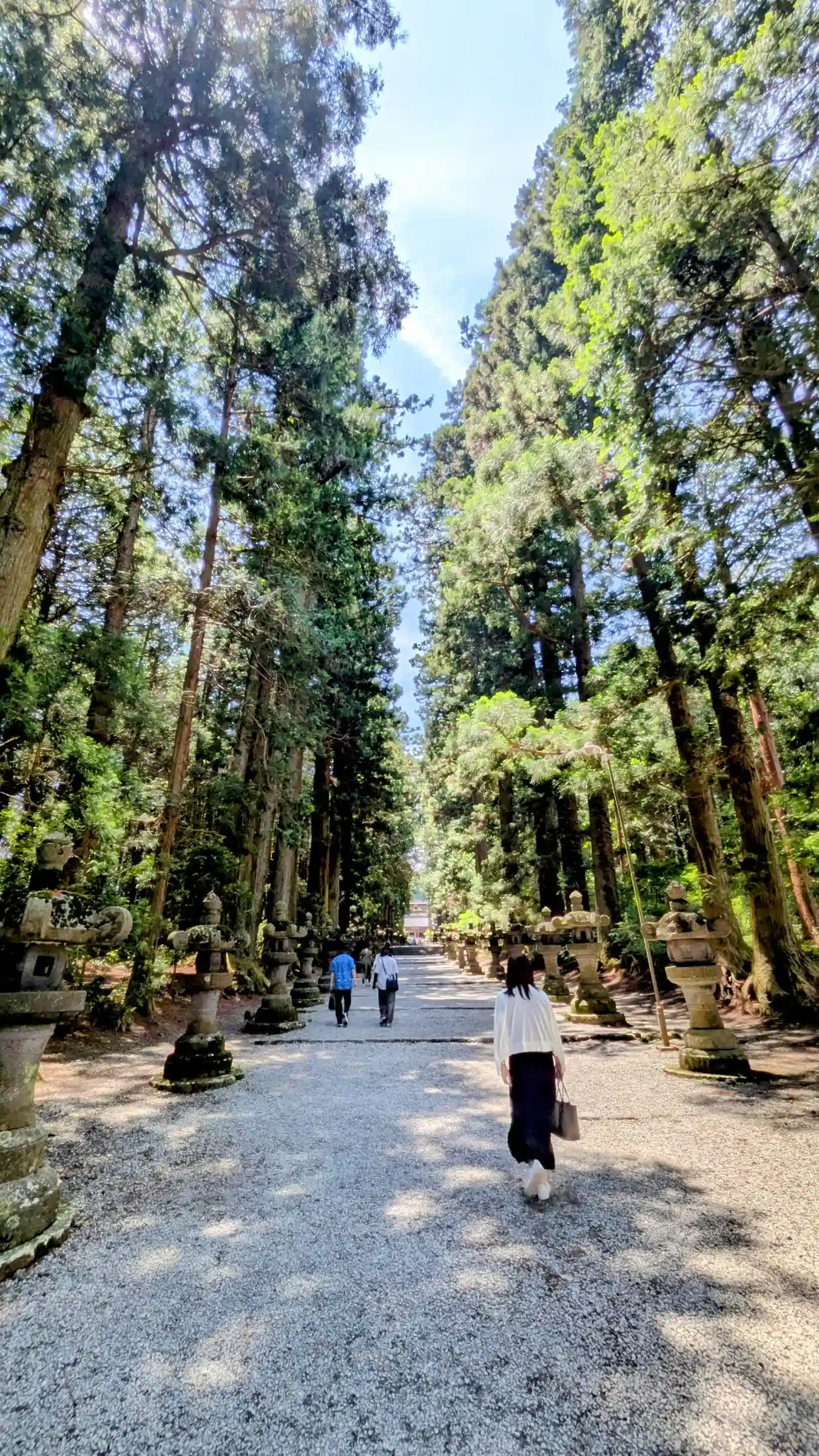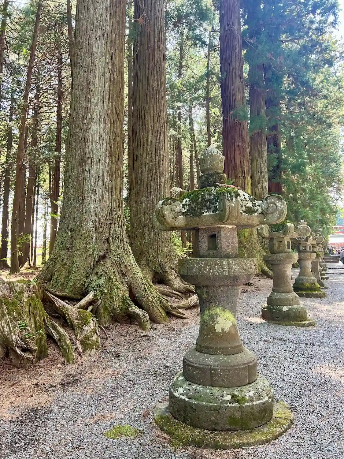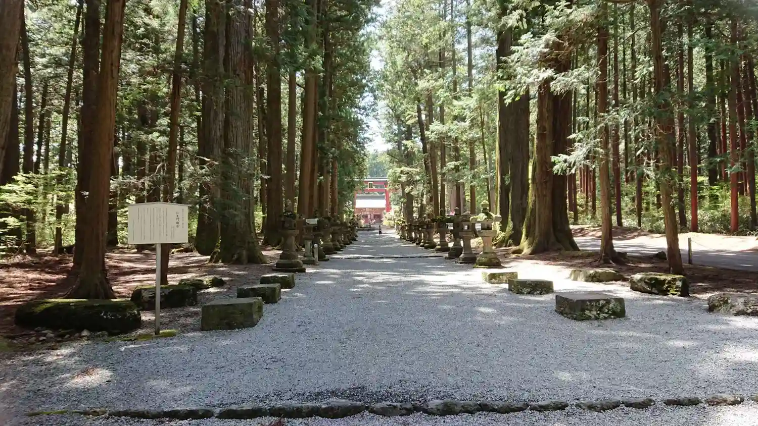 両側に杉の木が並び、その前に石灯籠がズラリとならんでいる。