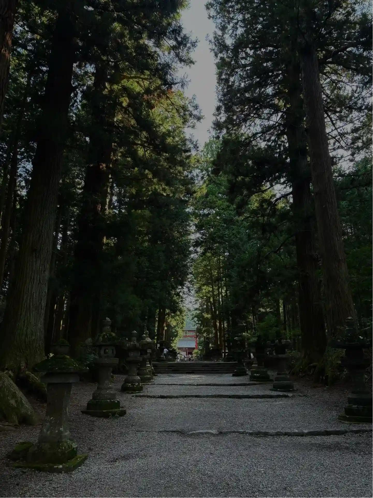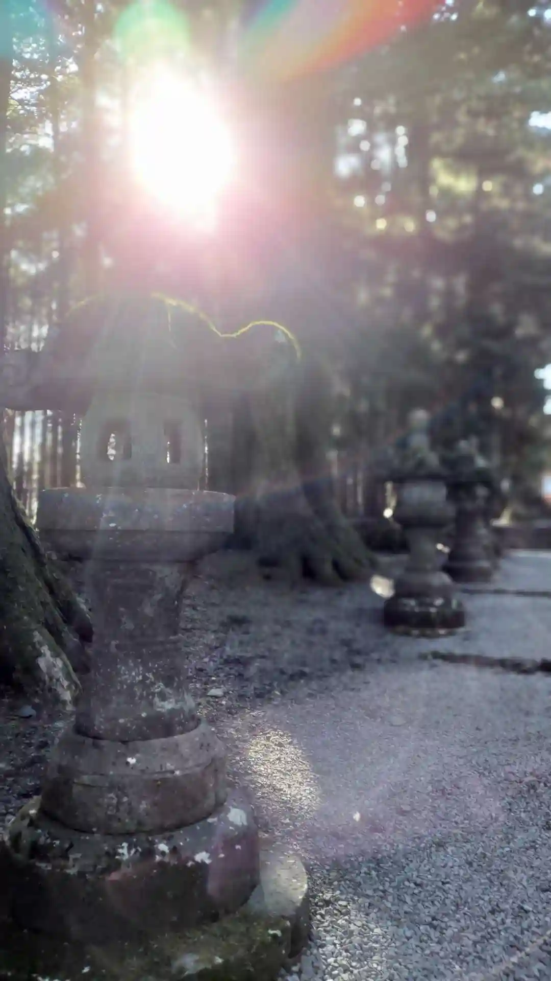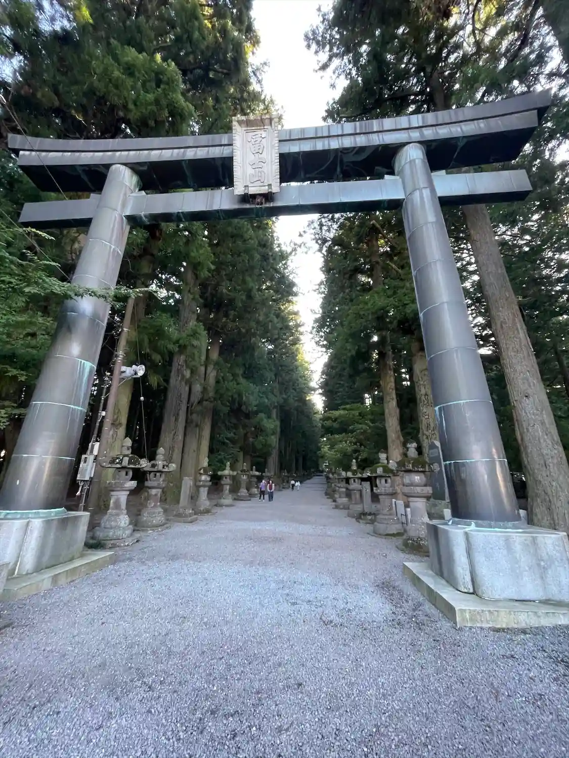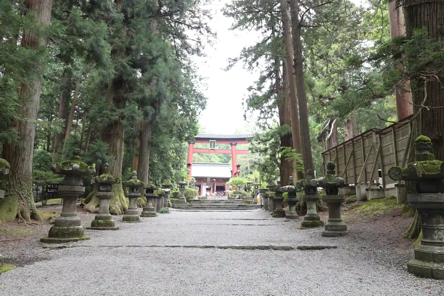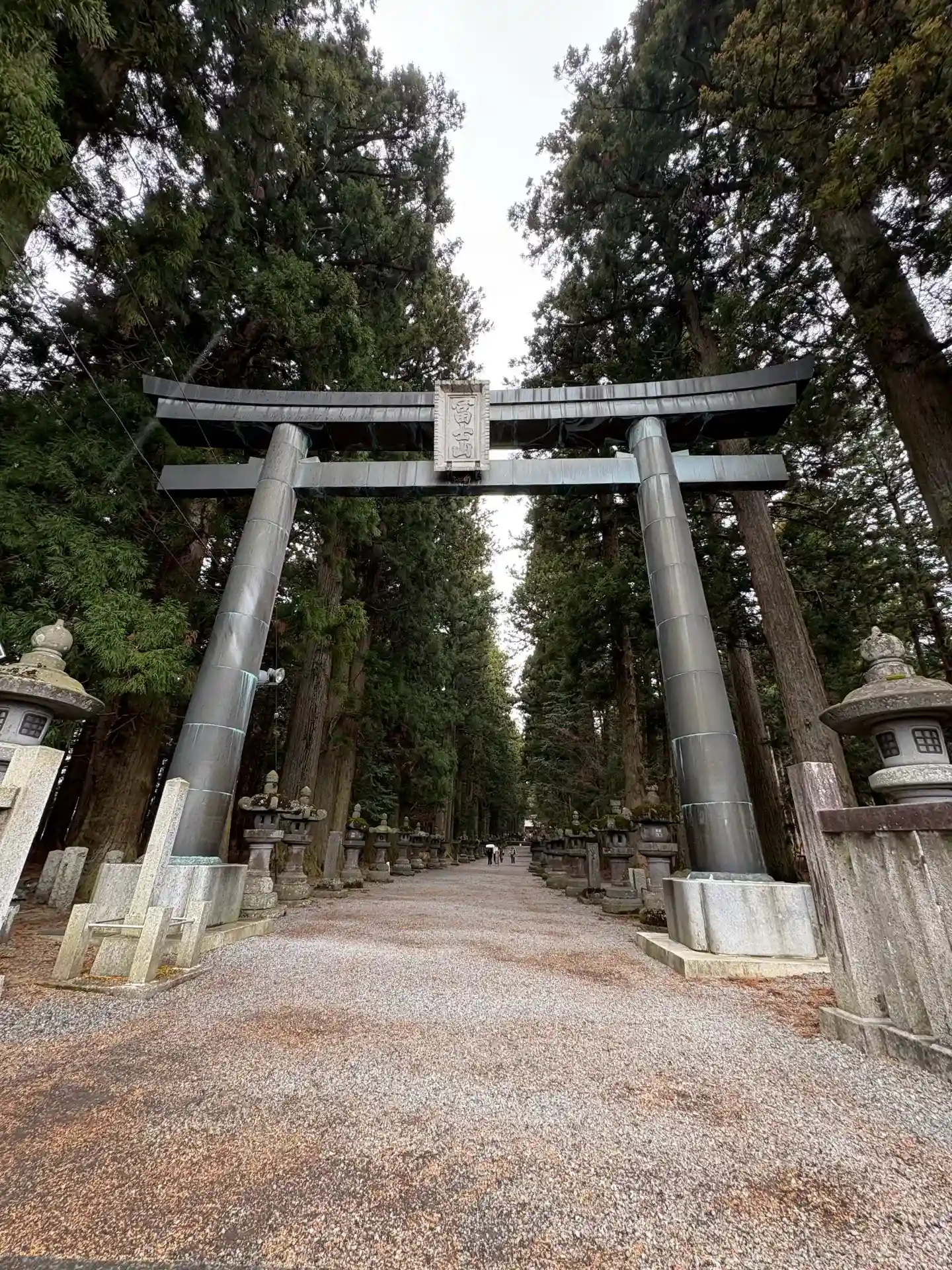 両側に杉の木が並び、その前に石灯籠がズラリとならんでいる。