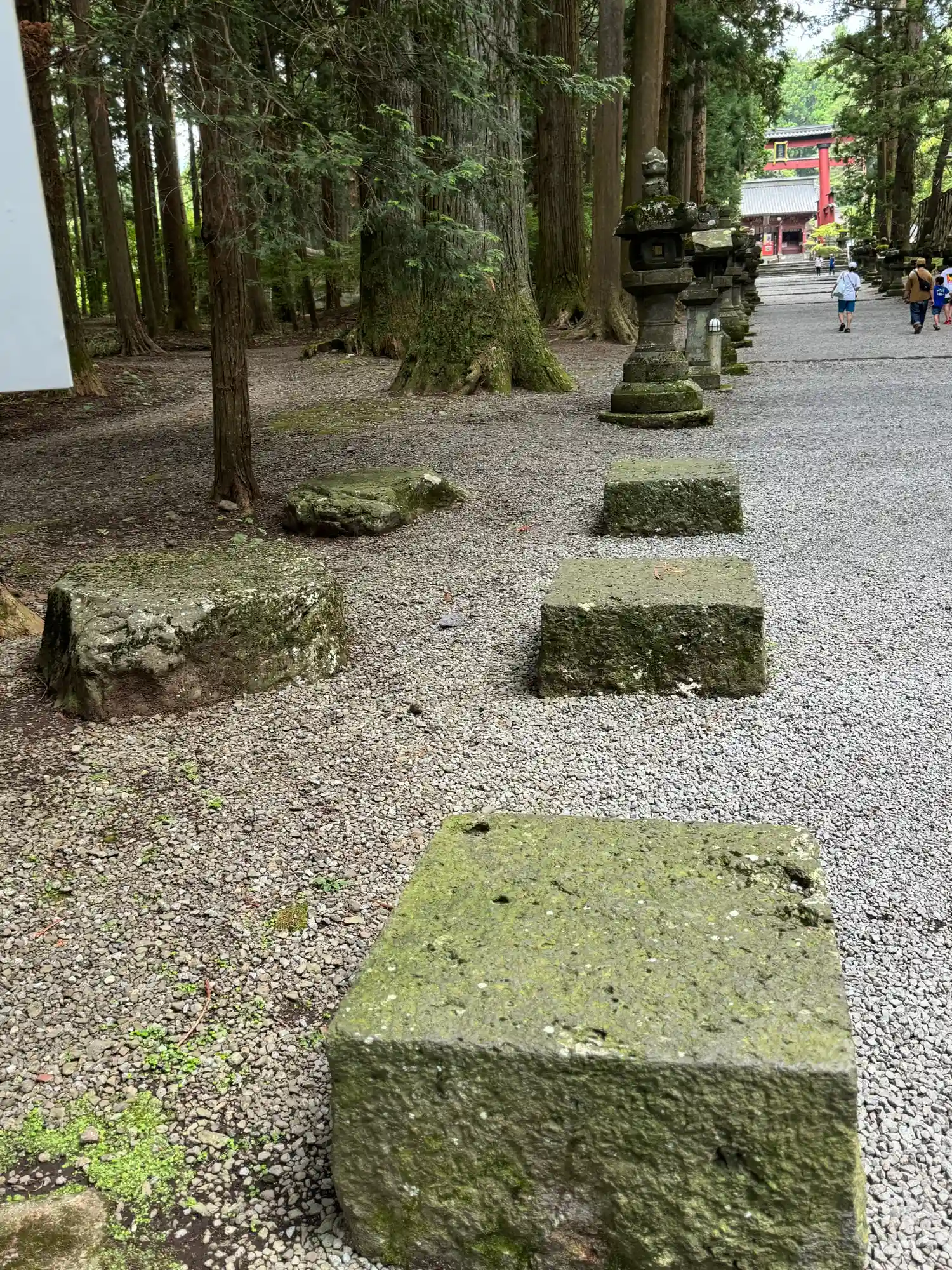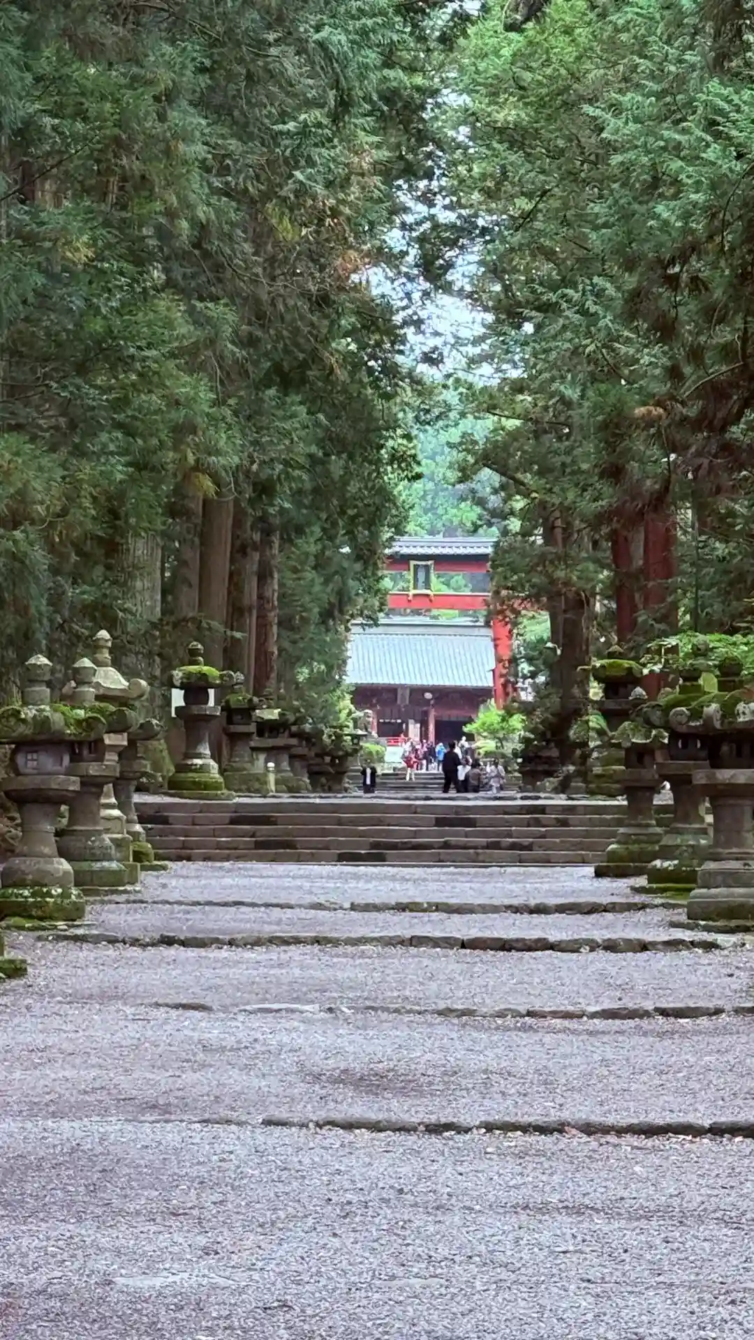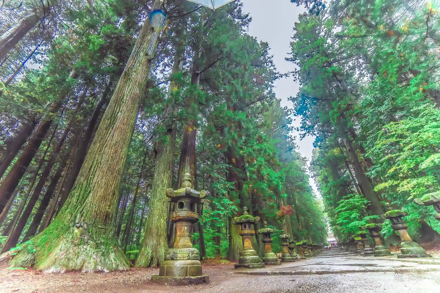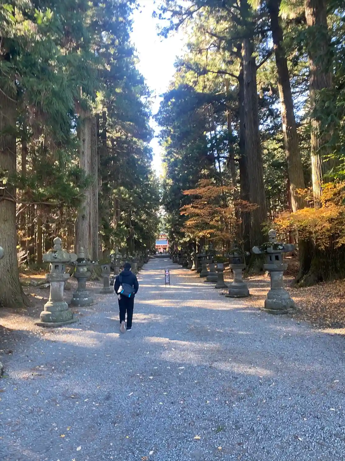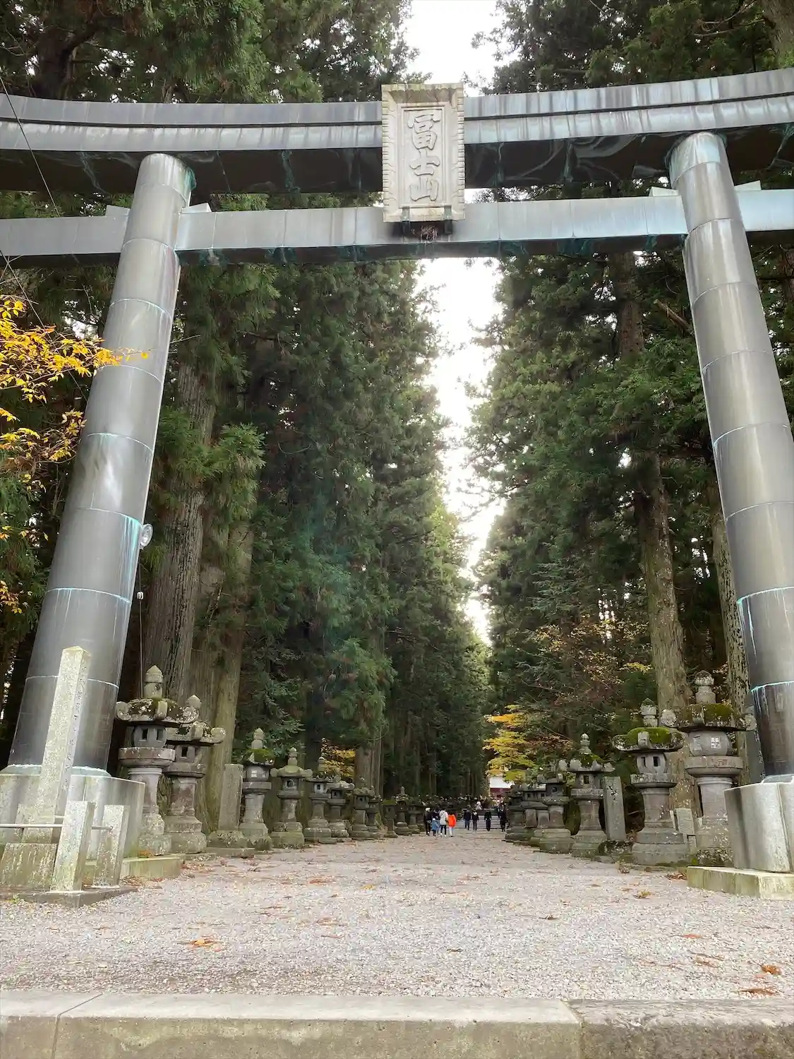 両側に杉の木が並び、その前に石灯籠がズラリとならんでいる。
