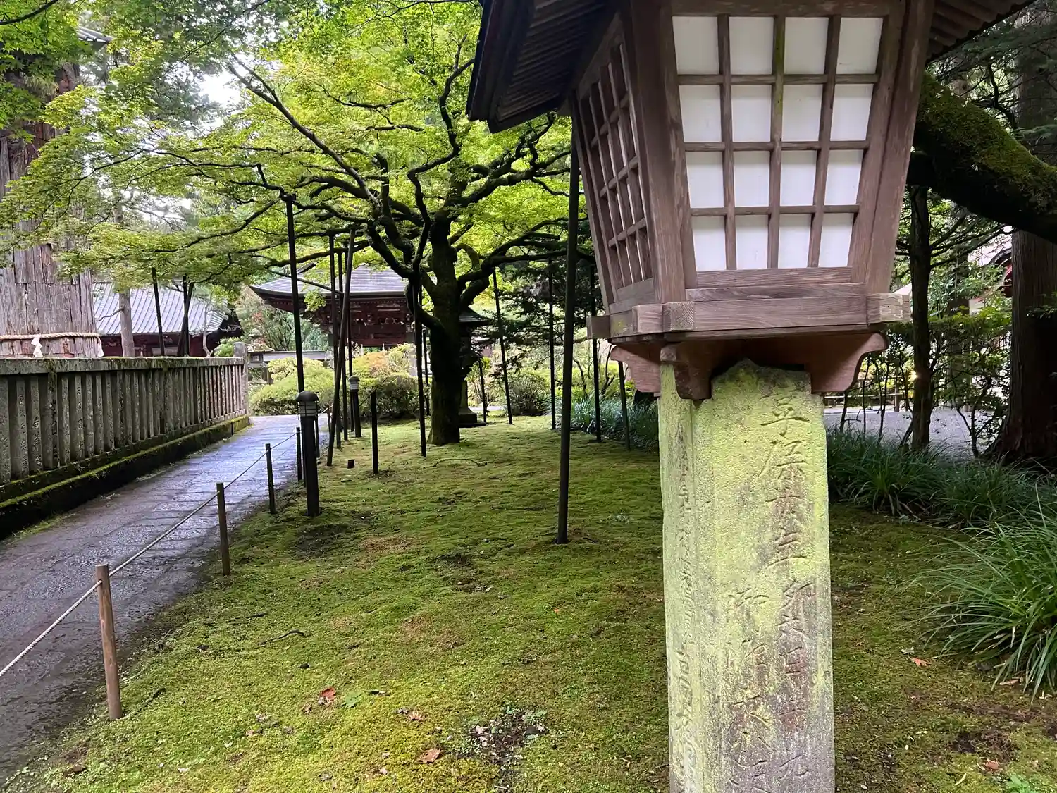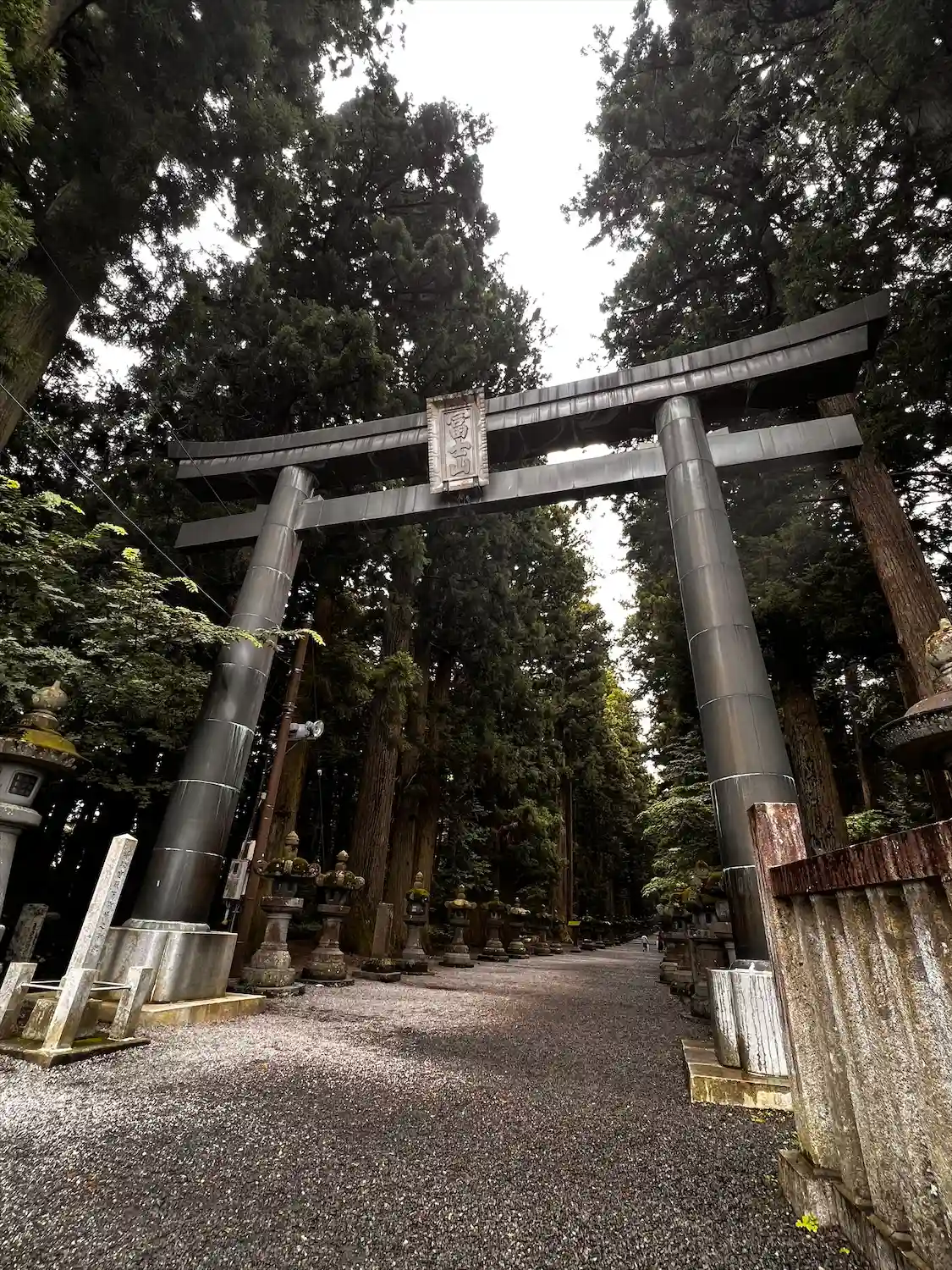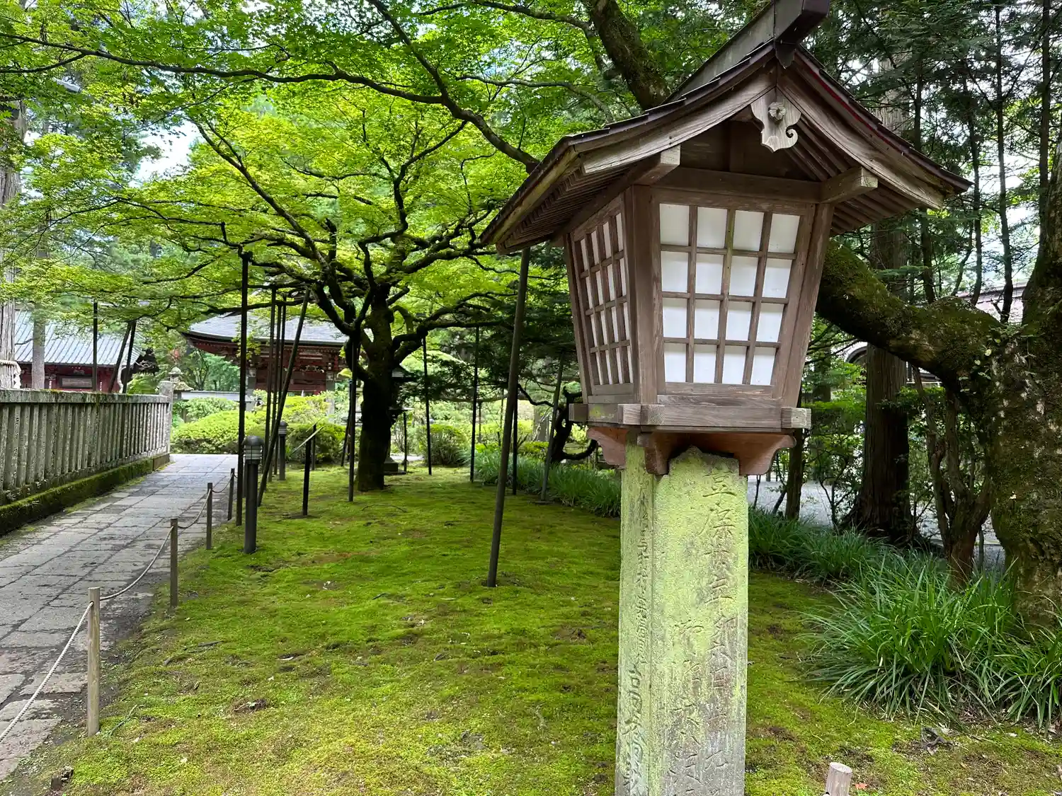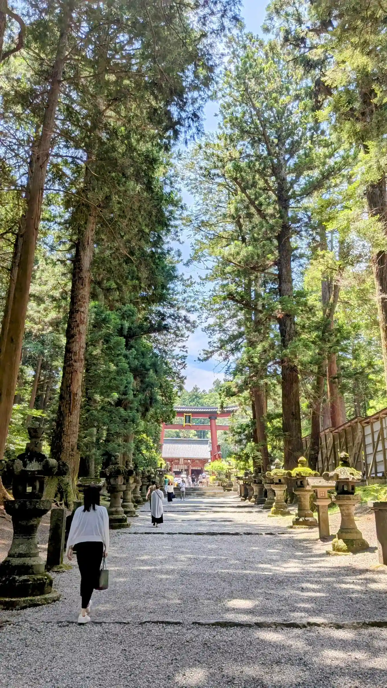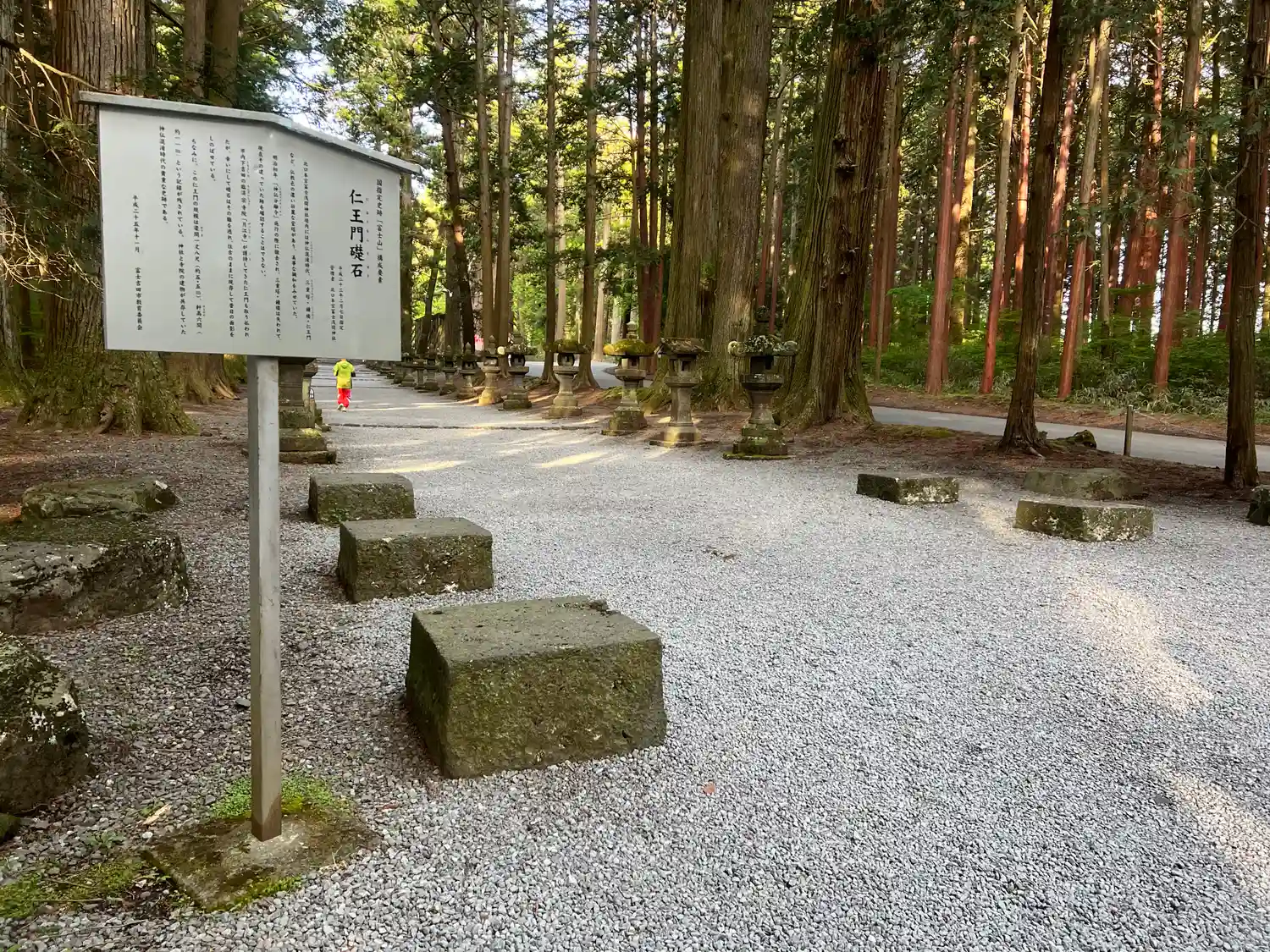 両側に杉の木が並び、その前に石灯籠がズラリとならんでいる。