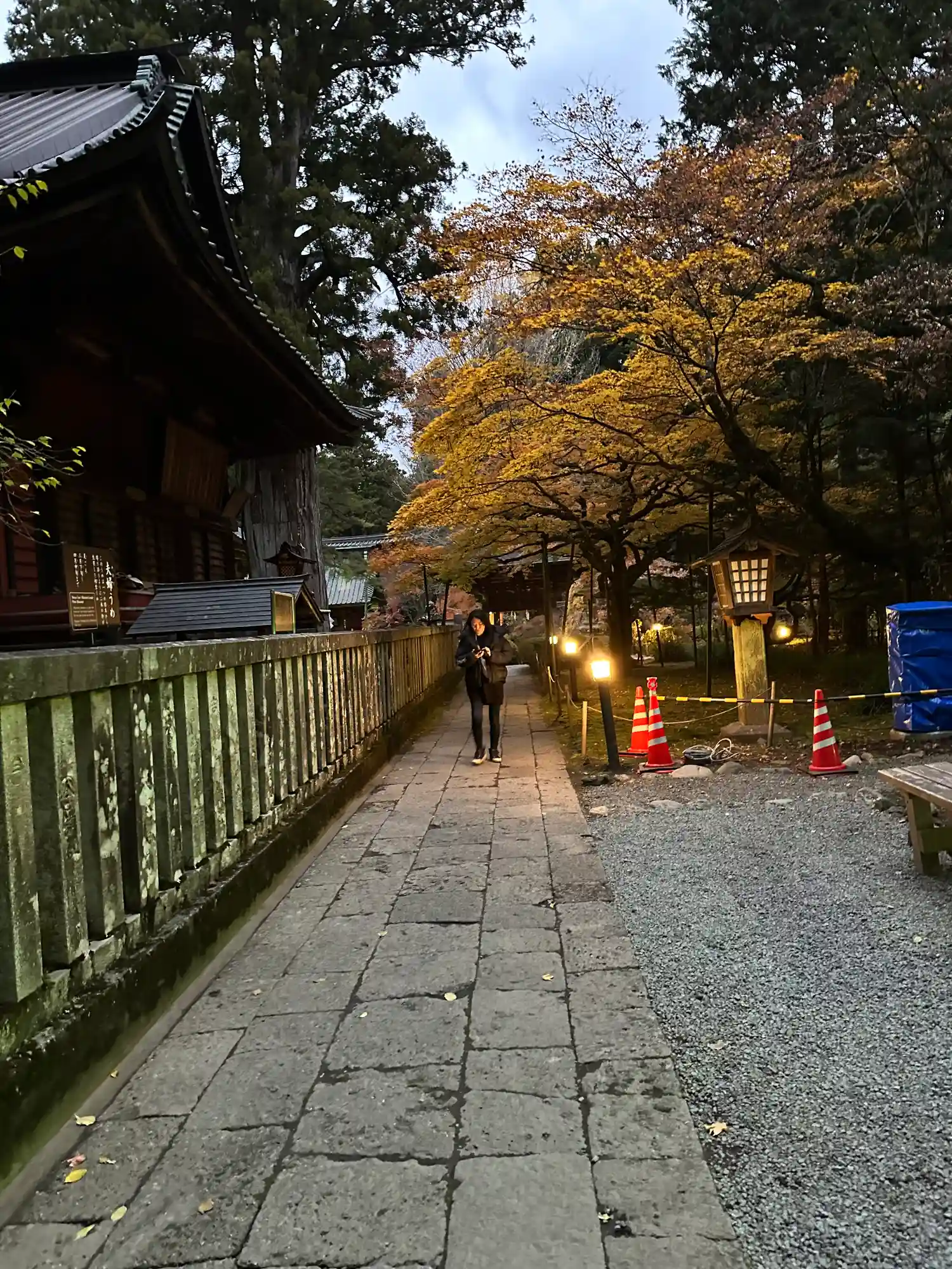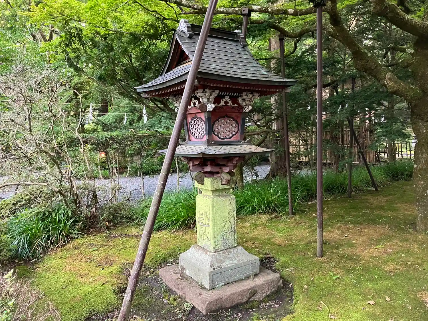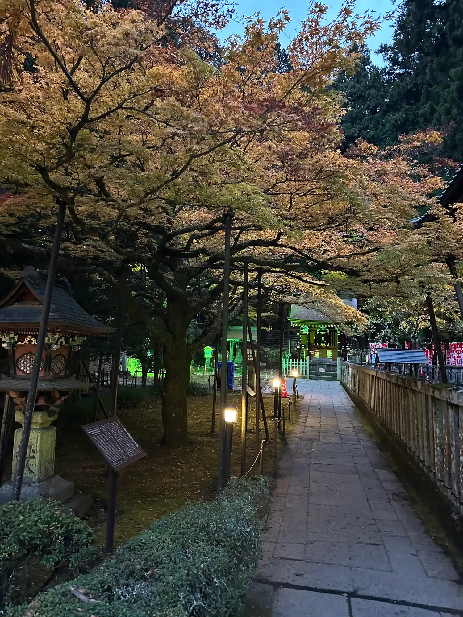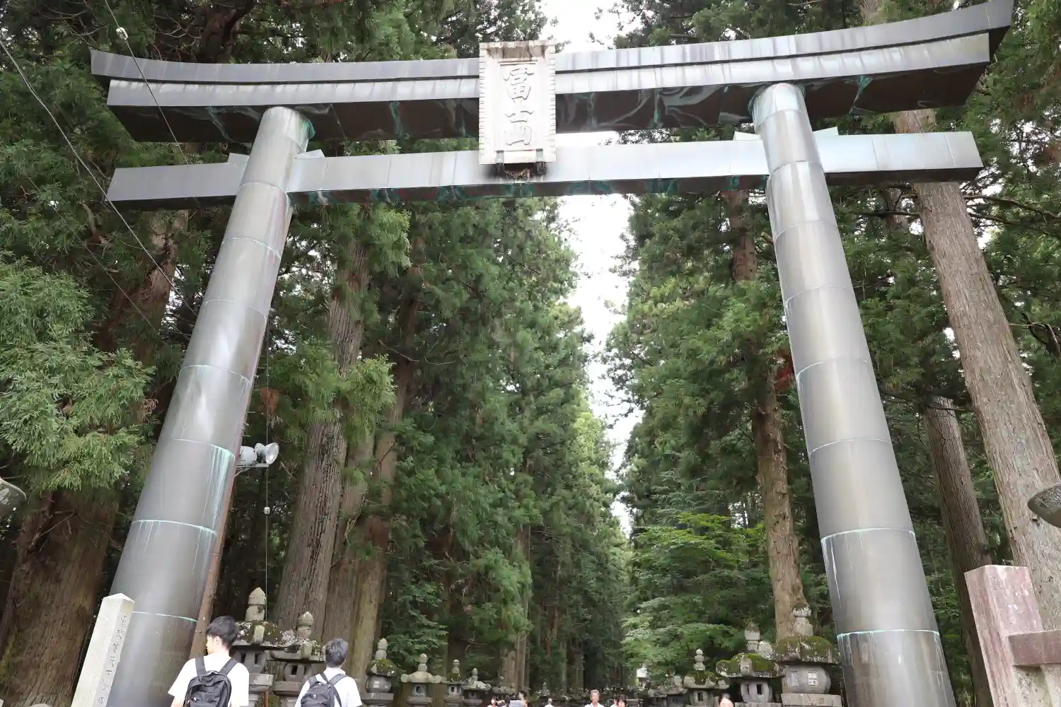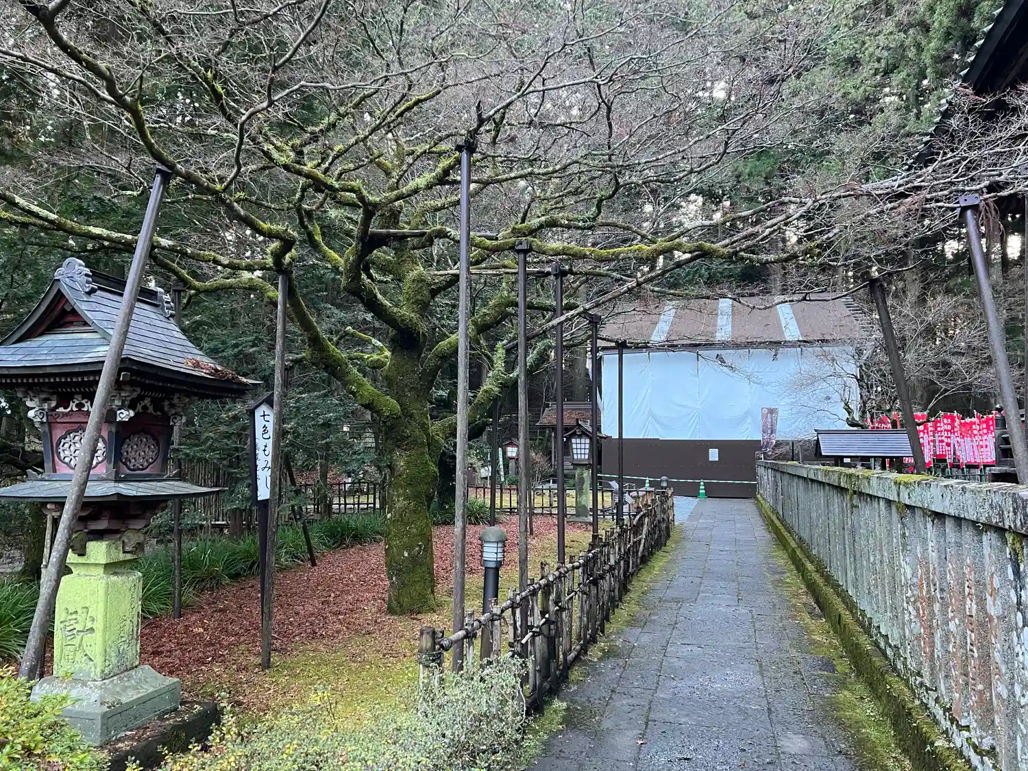 両側に杉の木が並び、その前に石灯籠がズラリとならんでいる。