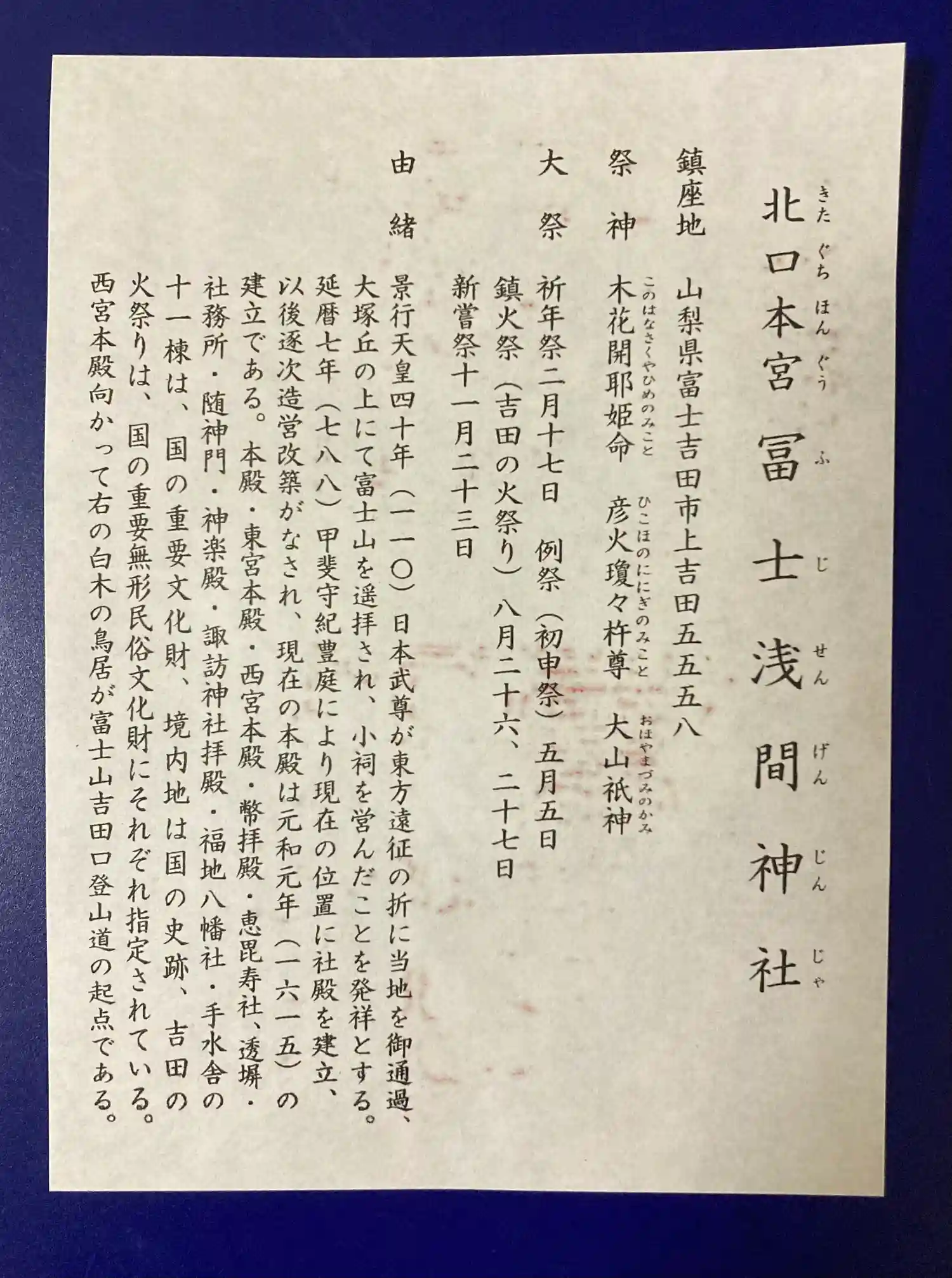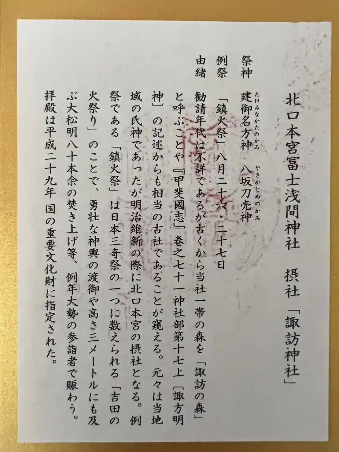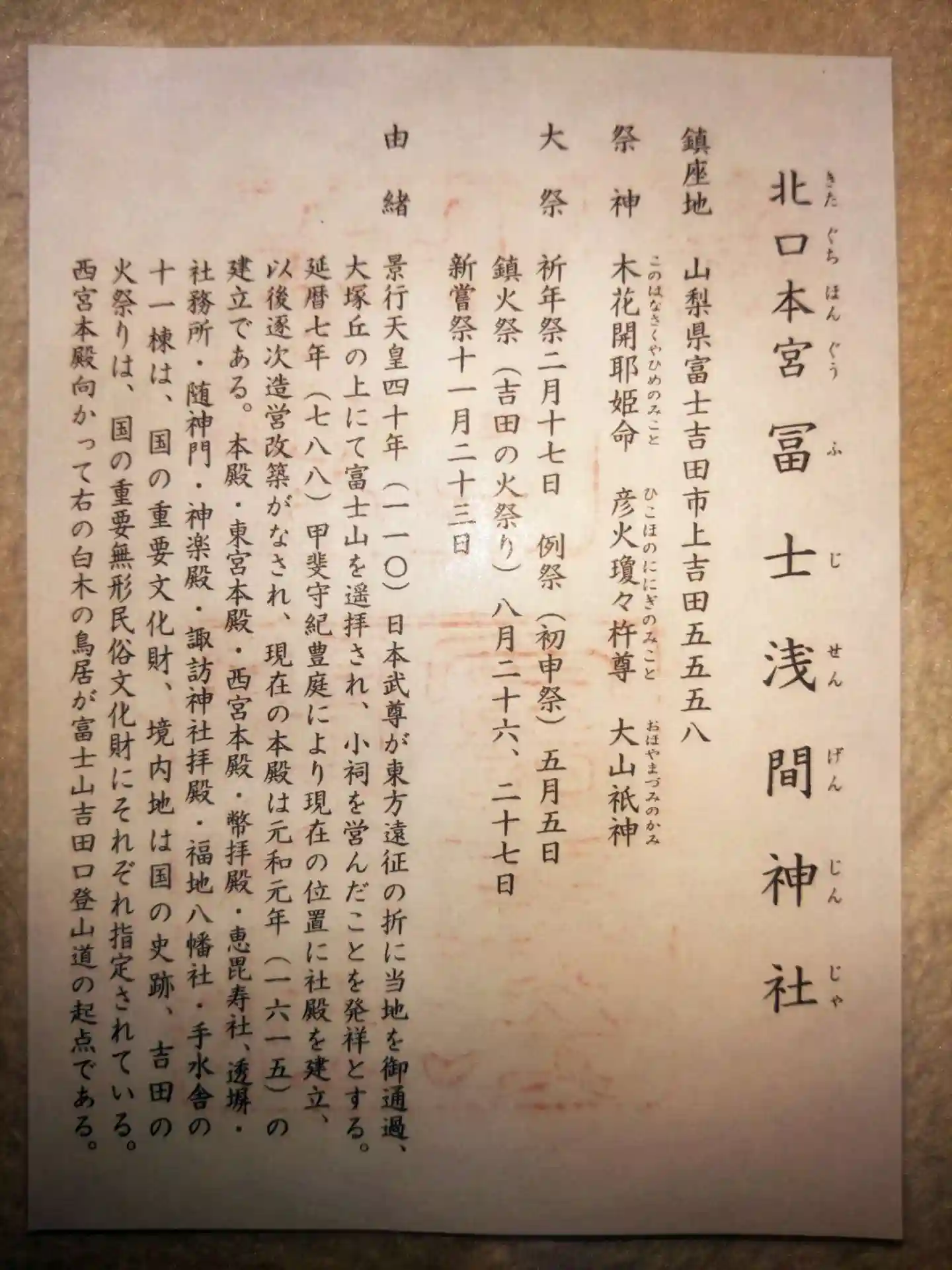 北口本宮冨士浅間神社 全国遺産