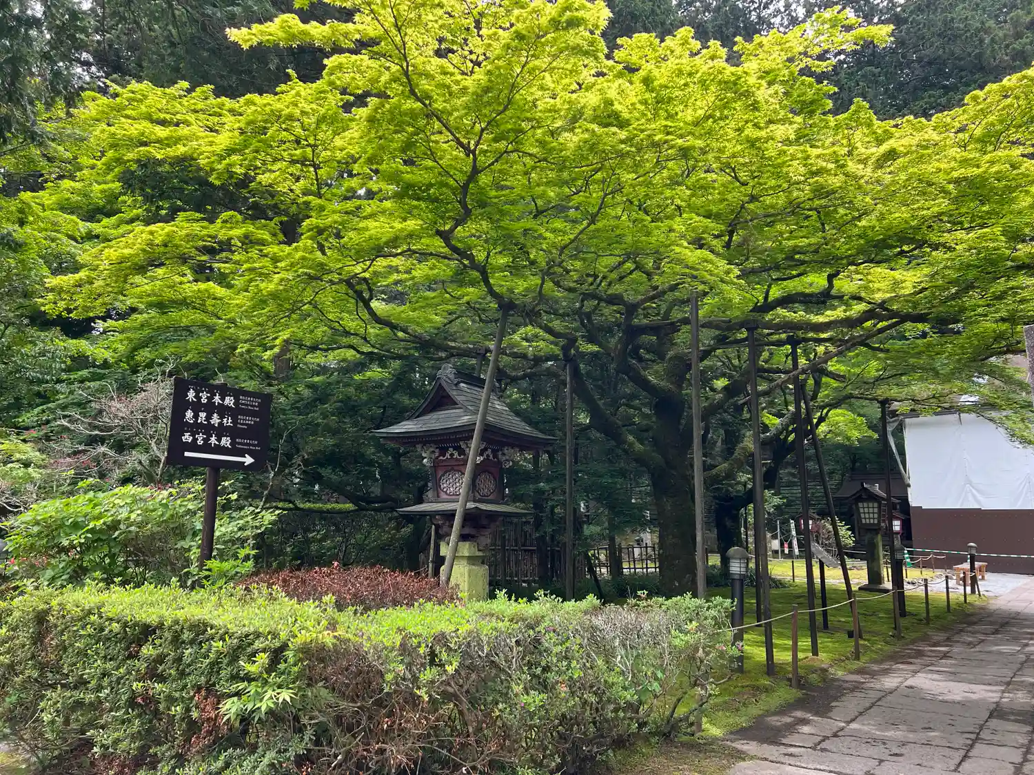 本殿の後ろに恵比寿社があり、…