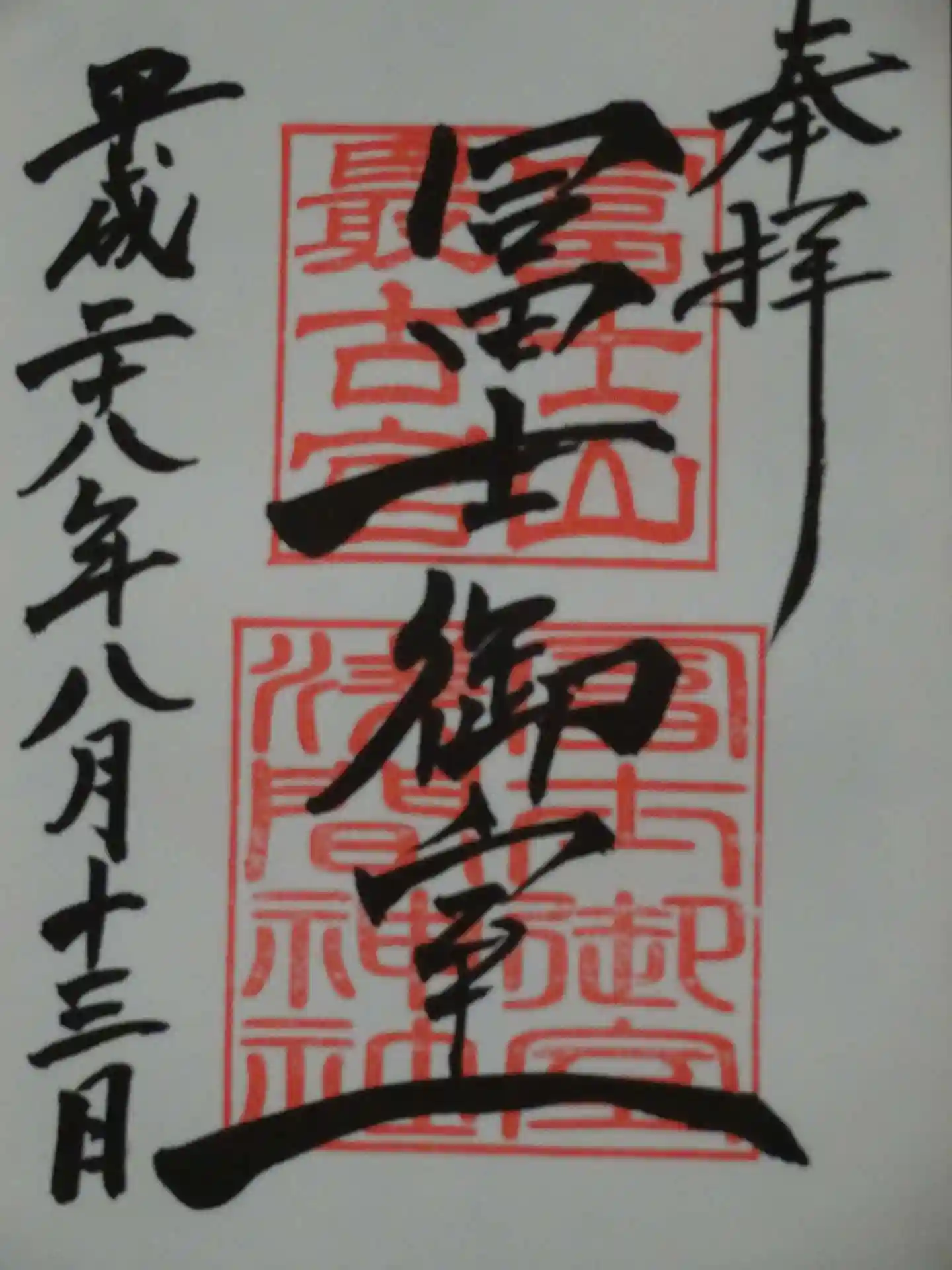 富士山域最古の神社といういことで、里宮と本宮を2社ございました。各々で御朱印を頂けます。河口湖駅から湖畔沿いを走ってきましたが、とても気持ちの良い工程でした。