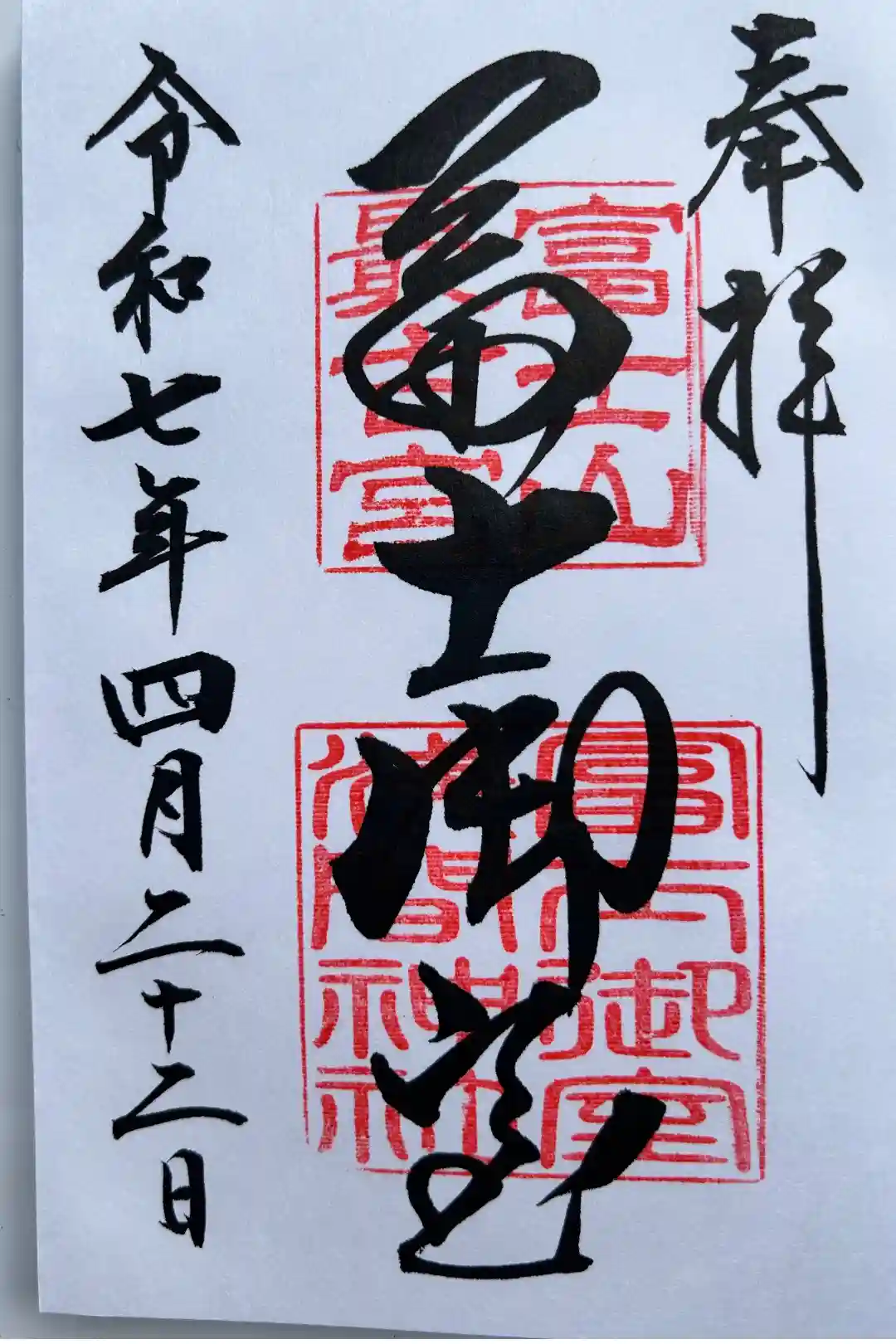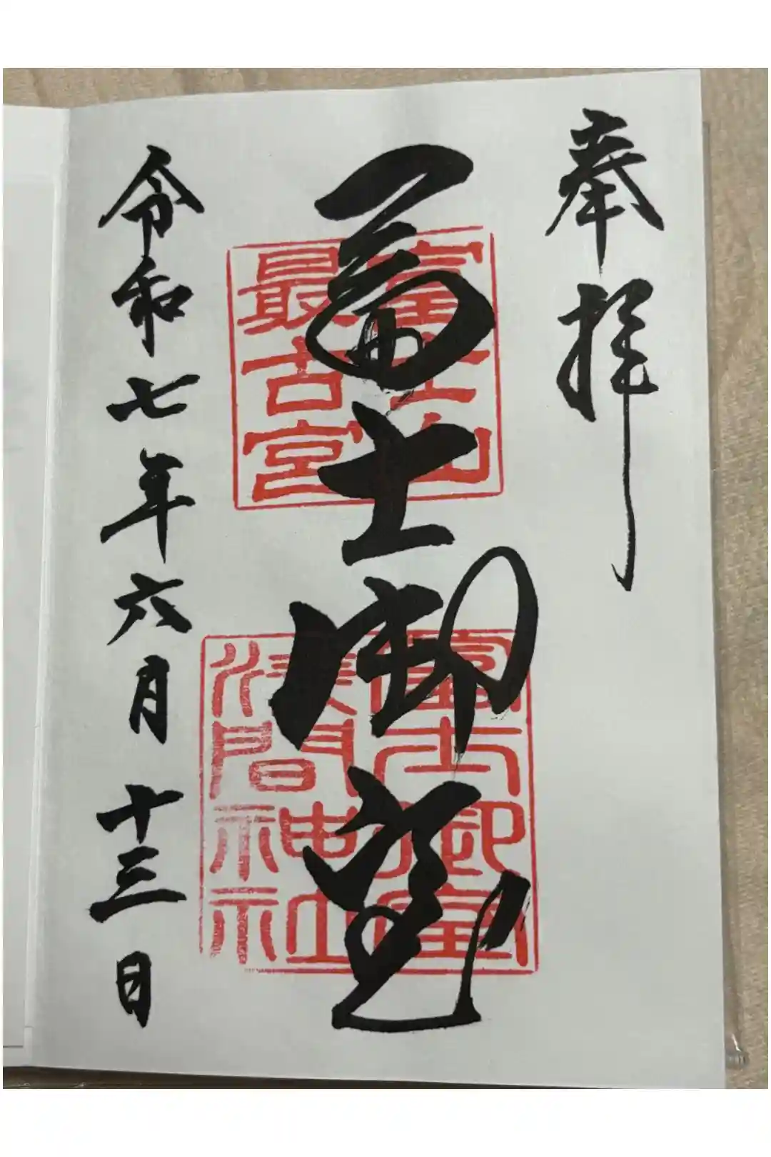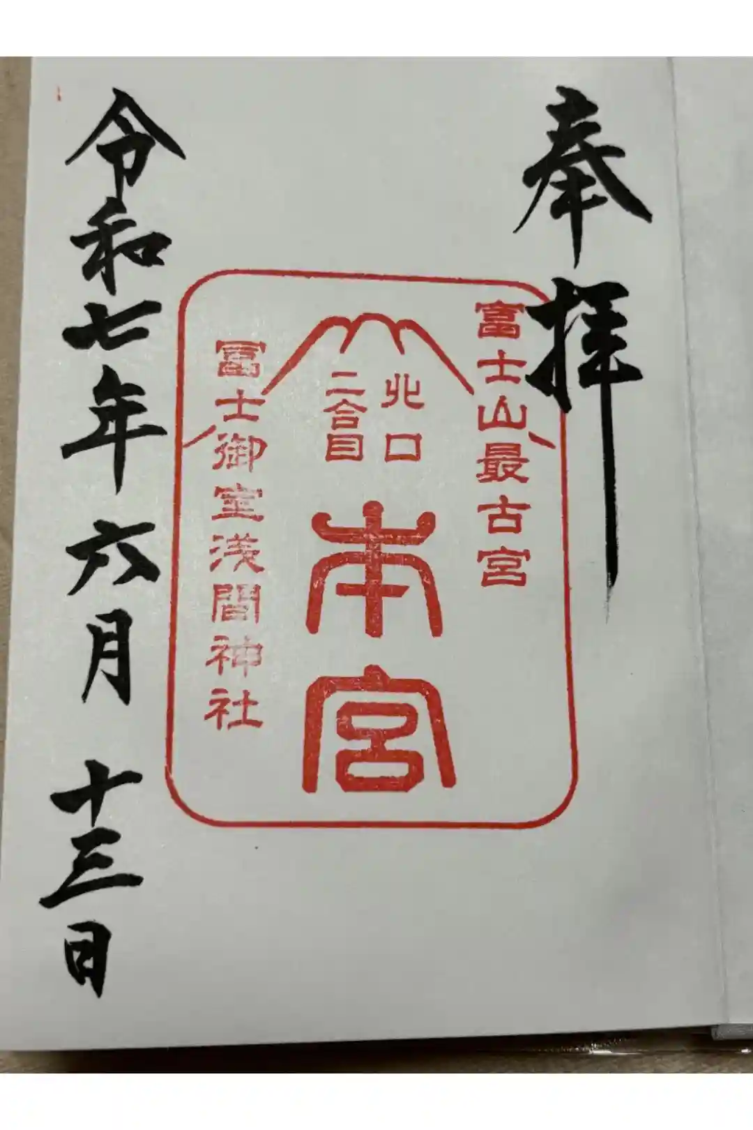 真ん中に冨士御室と書かれ、富士山最古宮の印、社印が押されています。