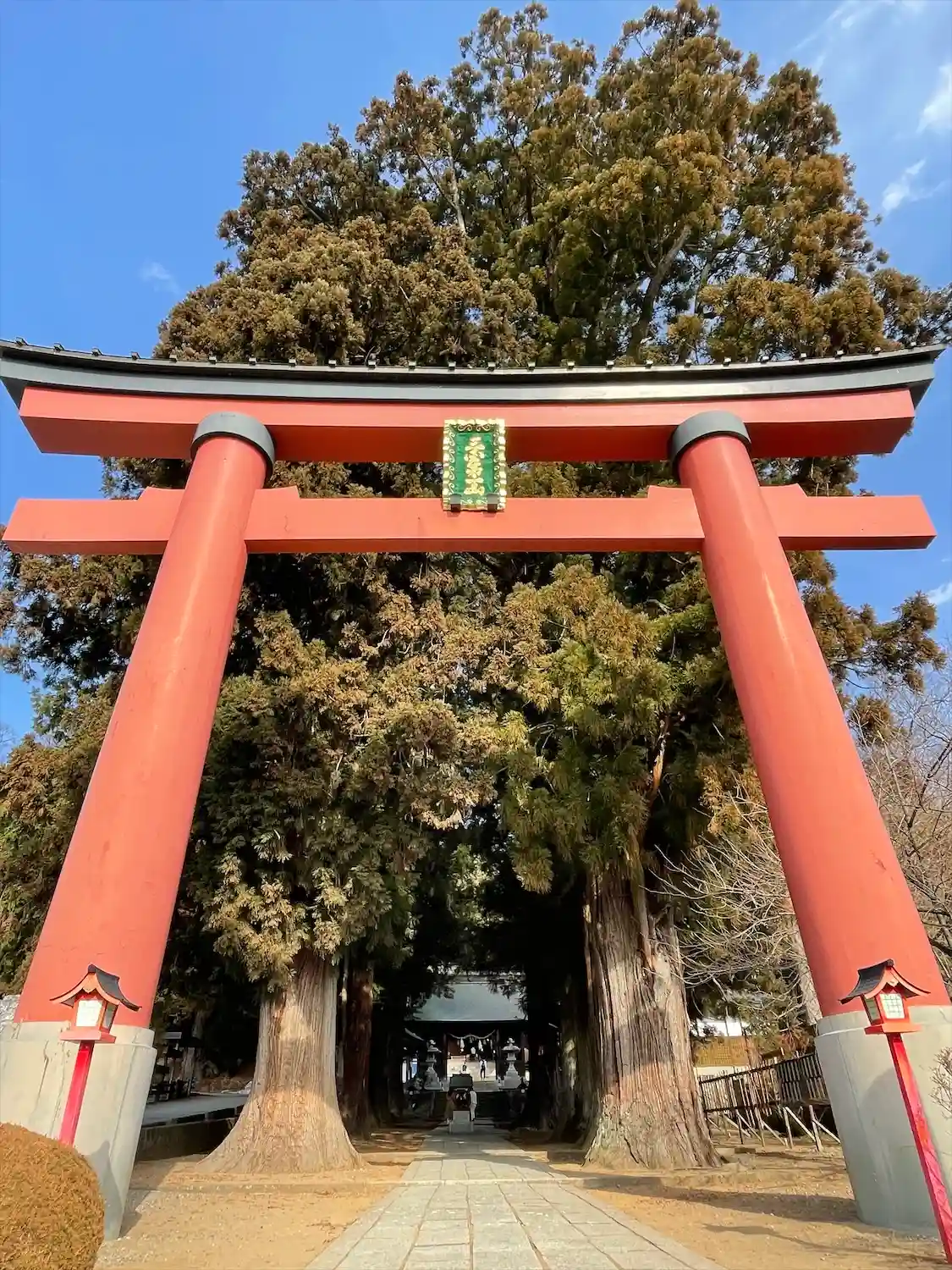 鳥居をくぐると杉の巨木が茂る参道があります。