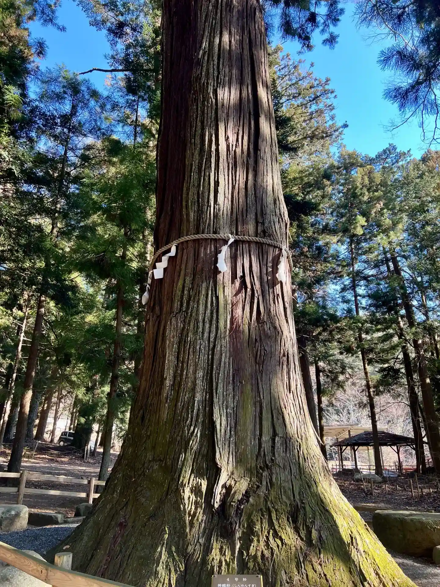 「天空の鳥居」に行きたかったので、まずは朝イチにこちらに車を停めて、、歩く予定でしたが、杉の大木が…