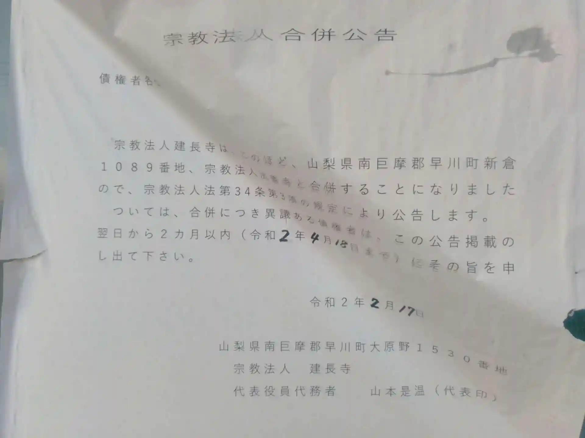 だいたい1年前に近隣のお寺へ合併となったようです。