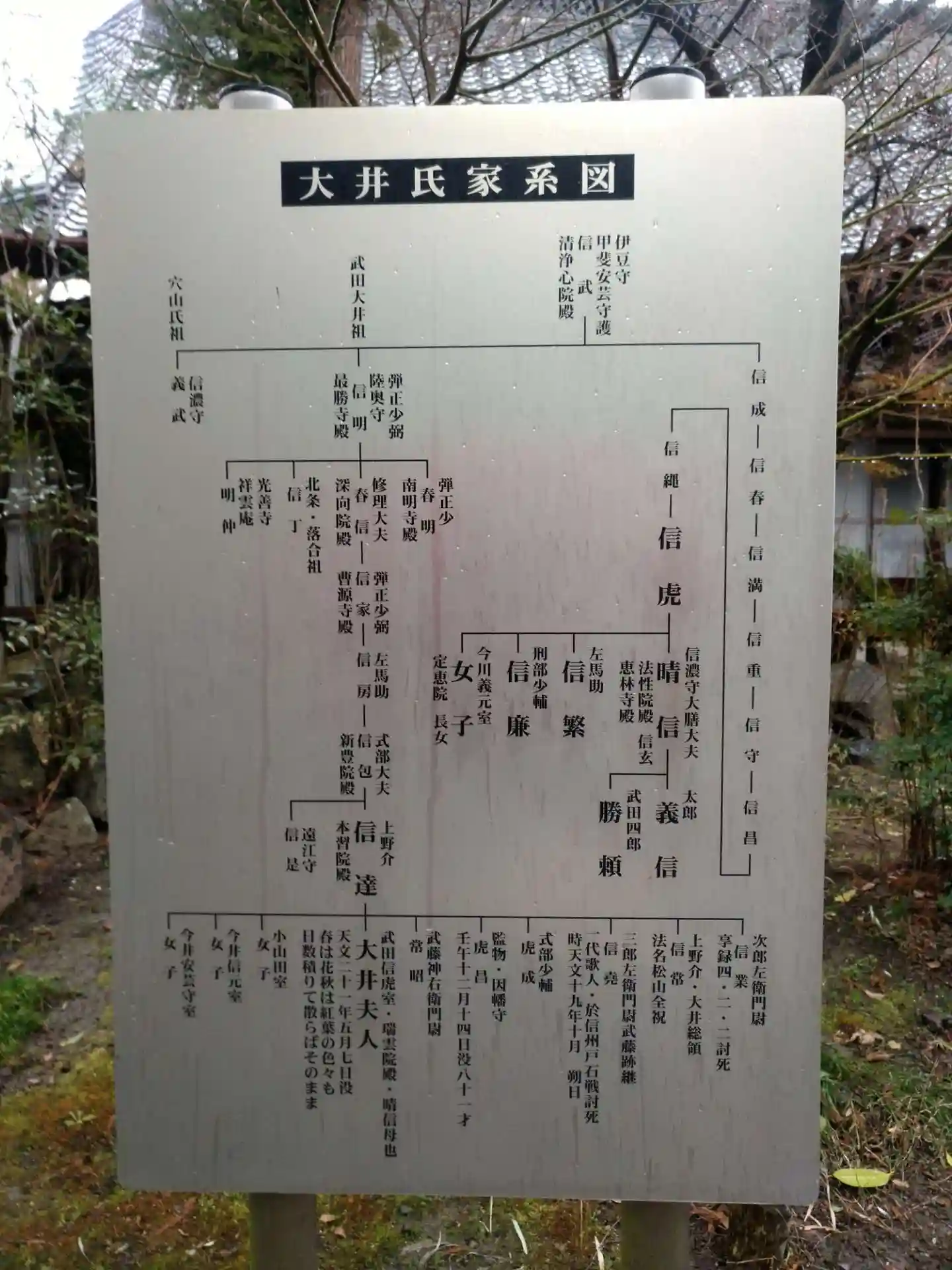 本堂裏手に武田信玄公の生母である大井の方のお墓があります。横に歌碑が立っていました。