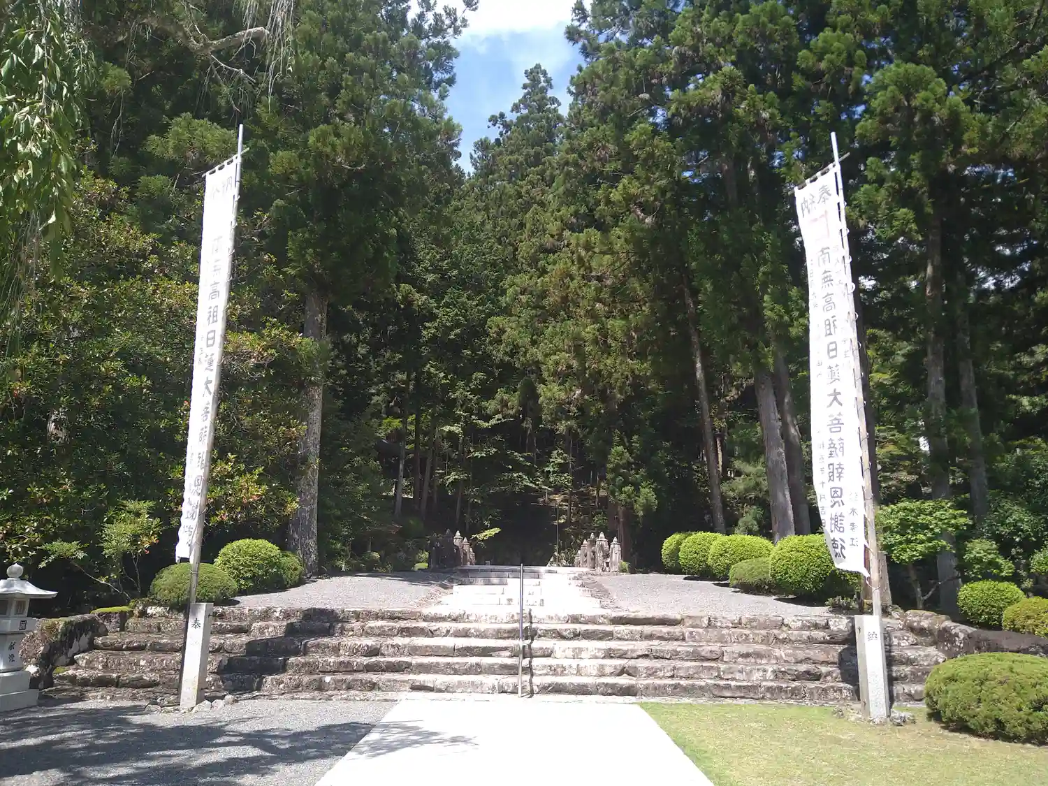 参道左手に<納骨供養塔>。参道右手に御廟法務所があり、御朱印はこちら。