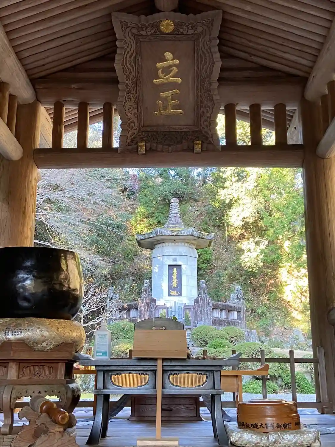 <立正>の扁額。奥に見えるのが<祖廟塔>。