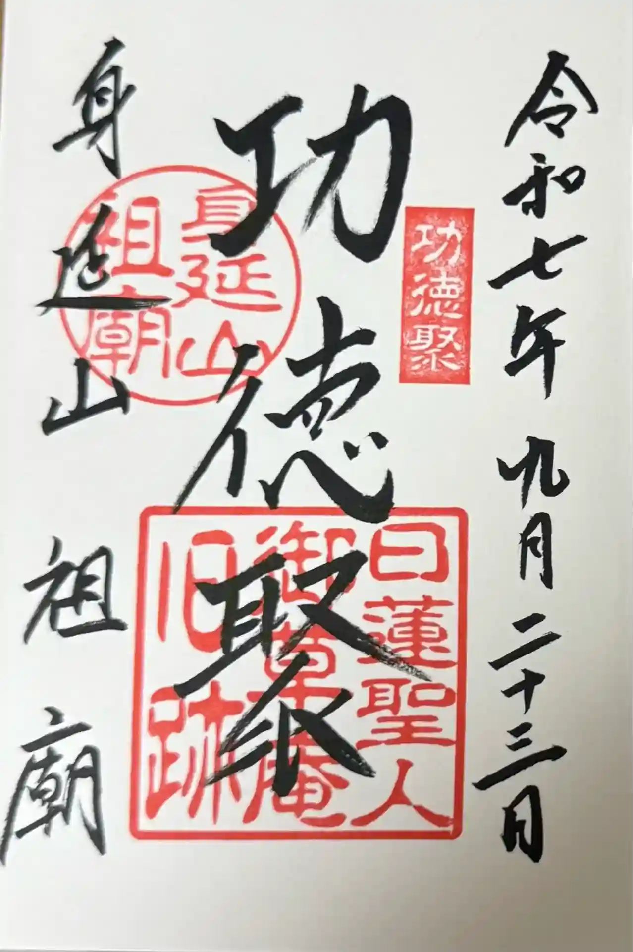 山梨県南巨摩郡身延町の祖廟拝殿です。カラフルな御首題を二回頂いていて今回は?