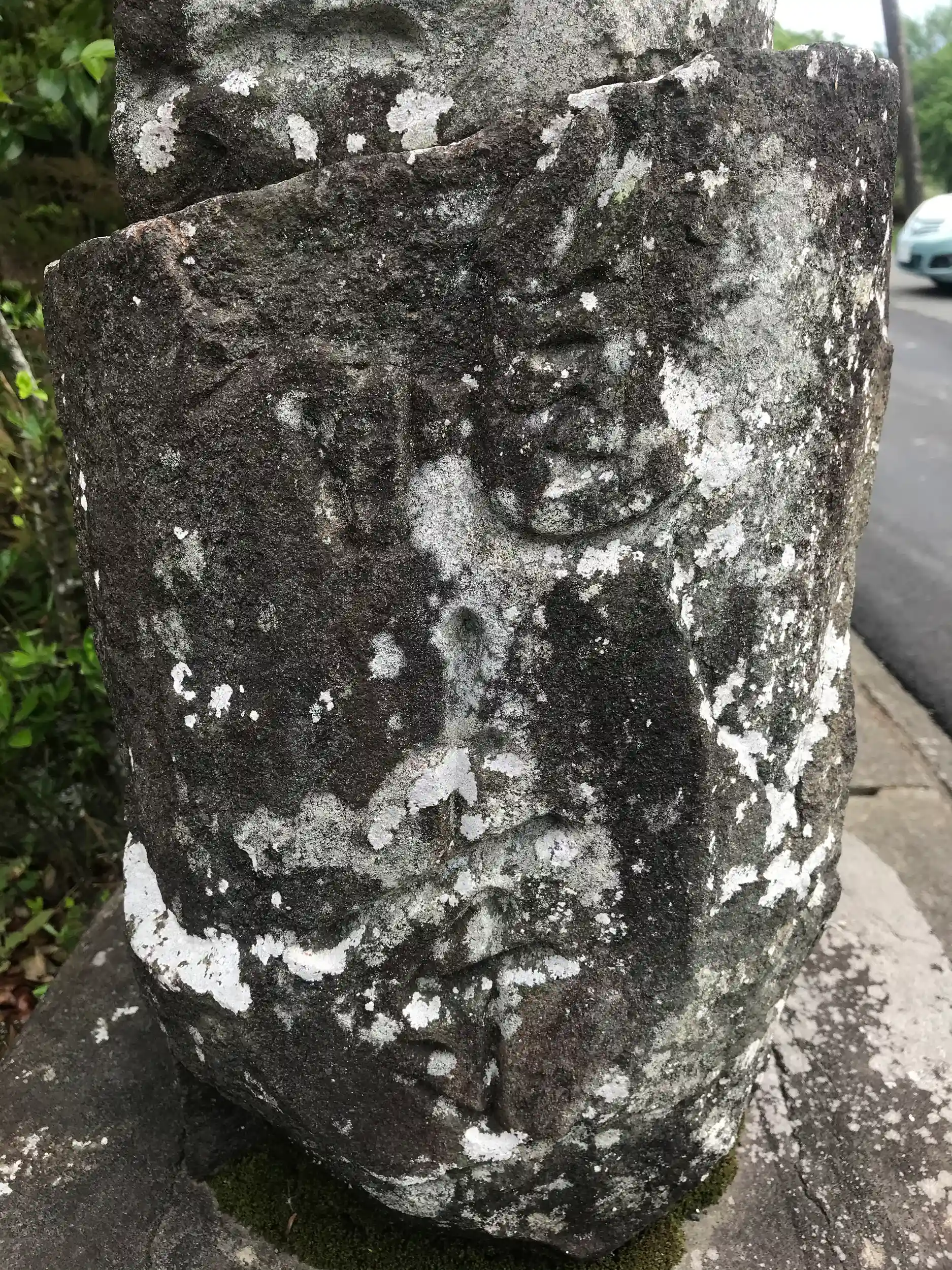 お経を読んだあと、周りを探索していたらお堂の裏側に壊れた石塔が建っていました。