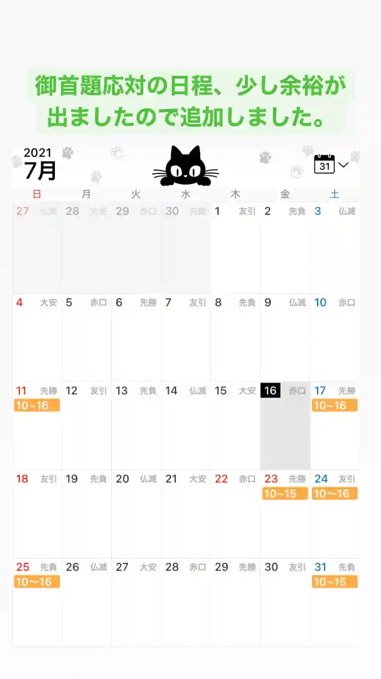 【7月の残りの応対日程】