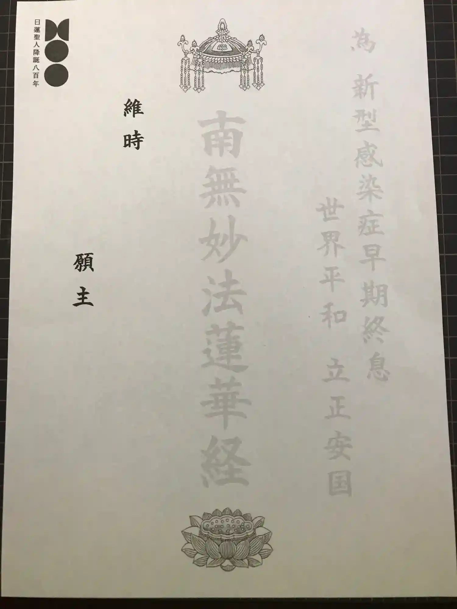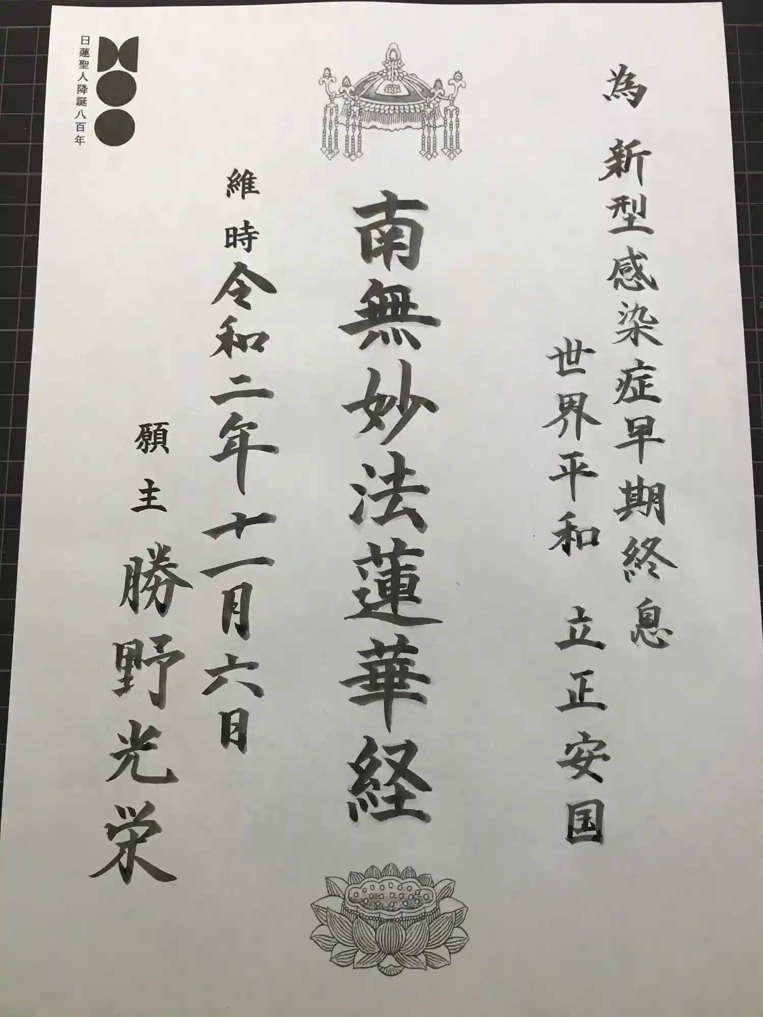 日蓮大聖人御降誕800年慶讃御首題です