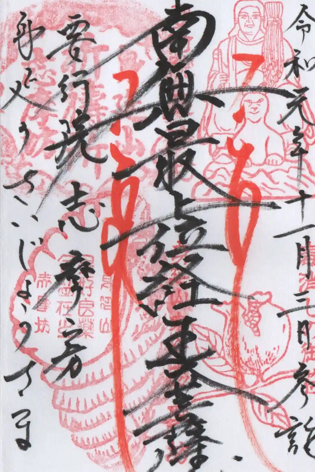 オンライン写仏プロジェクト「ツナガリイム」にて、山梨県身延町の志摩房様に写仏を納経し、御朱印を郵送…