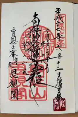他寺社の御朱印がある御朱印帳の場合は、中央に「妙法」等と書かれた御朱印になります。