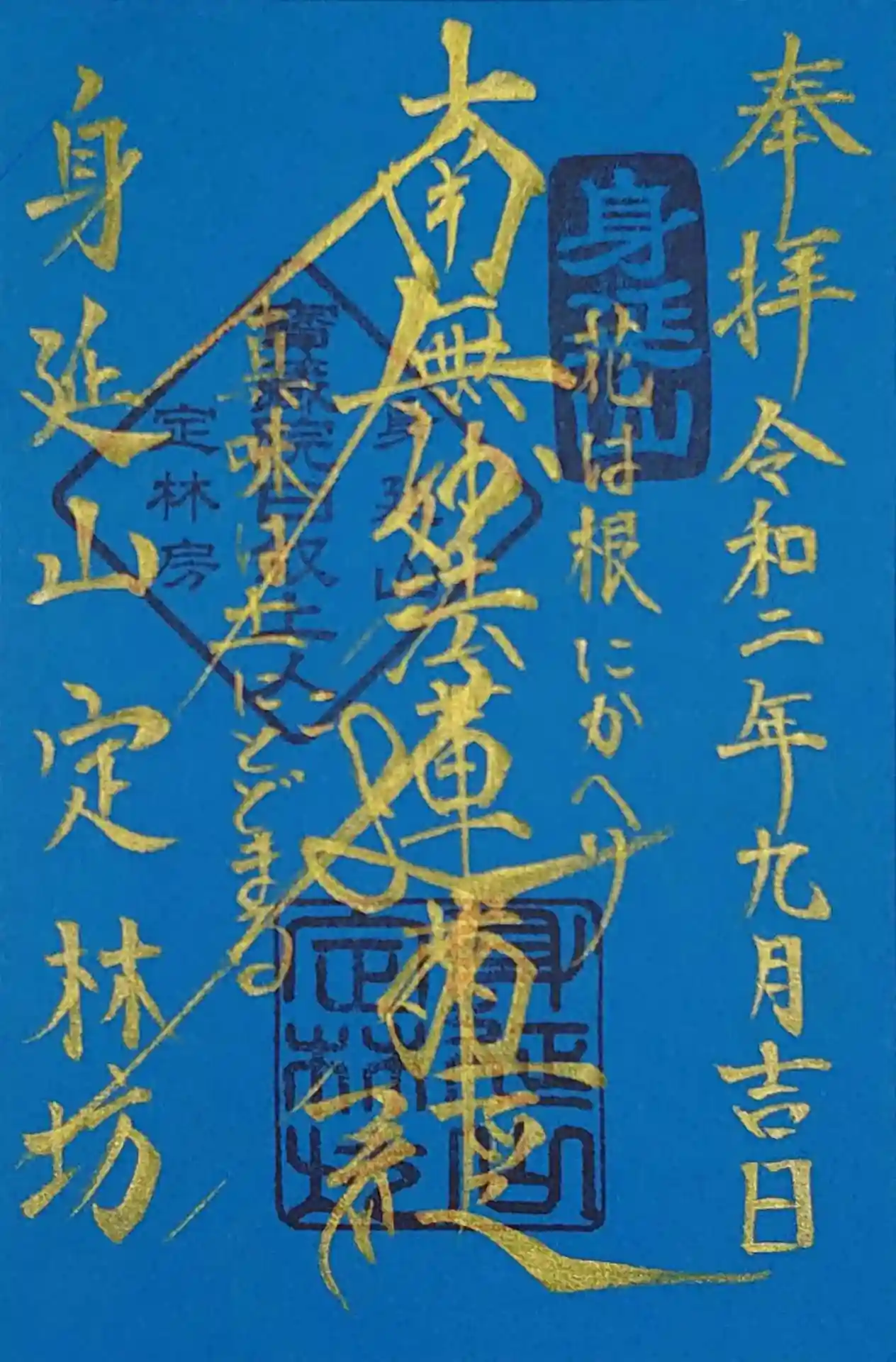 山梨県南巨摩郡身延町、定林坊様から9月の御首題を頂きました。