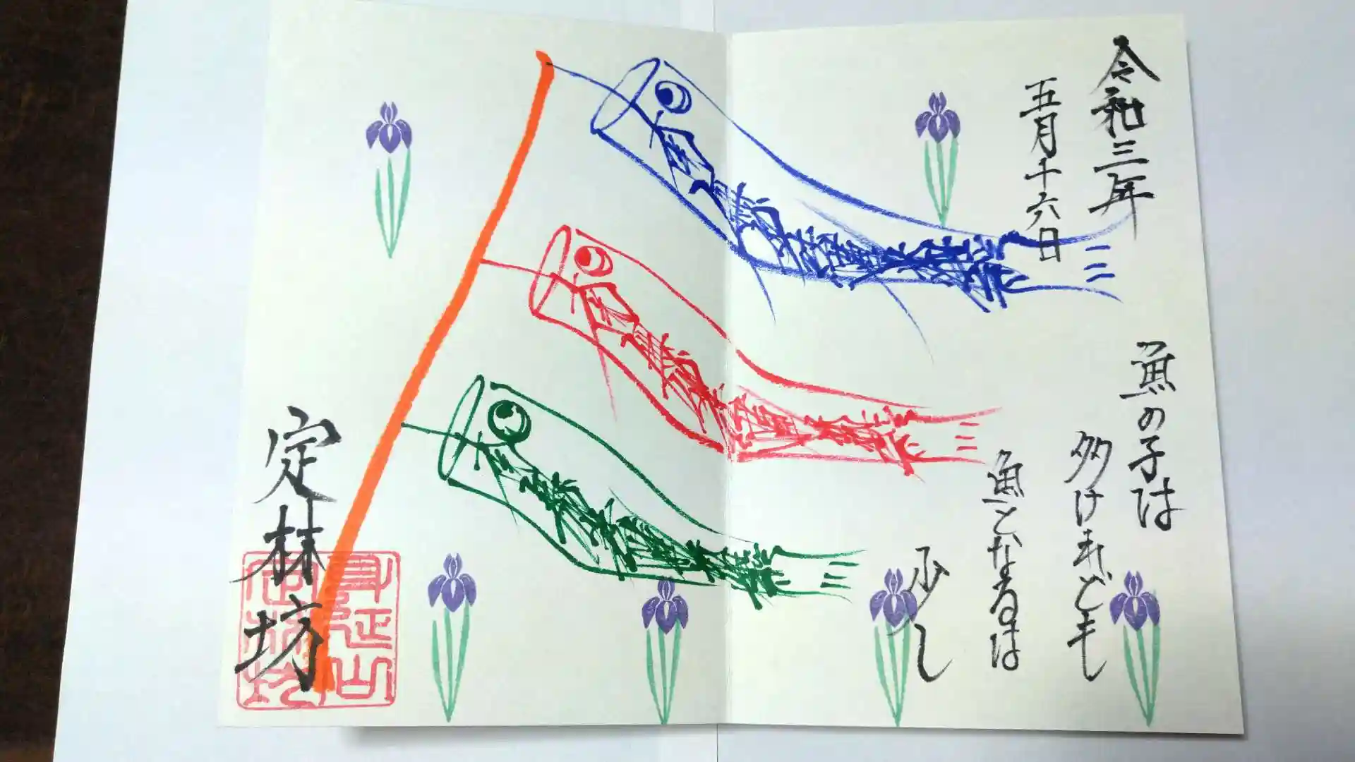 身延山定林坊の今月の御首題(鯉のぼり)と法華経和歌です。