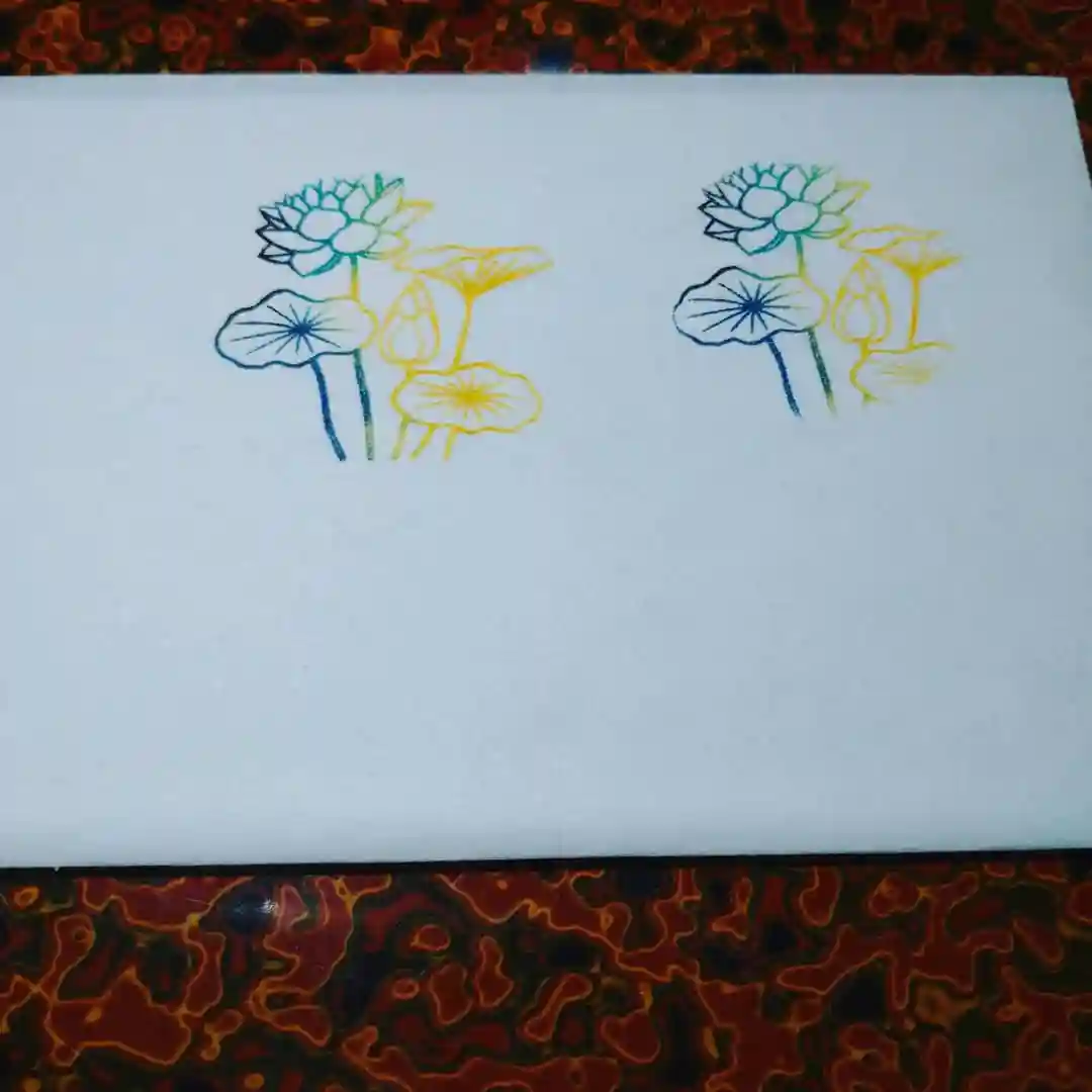 赤と黄色をお互い裏にして重ね合わせると、