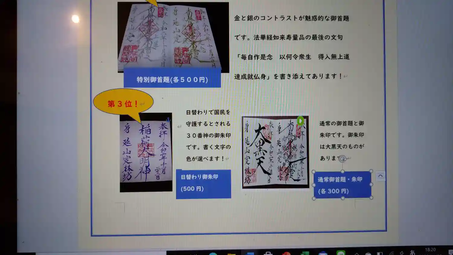 月替りの限定御首題を始められたとのことで訪問しました。