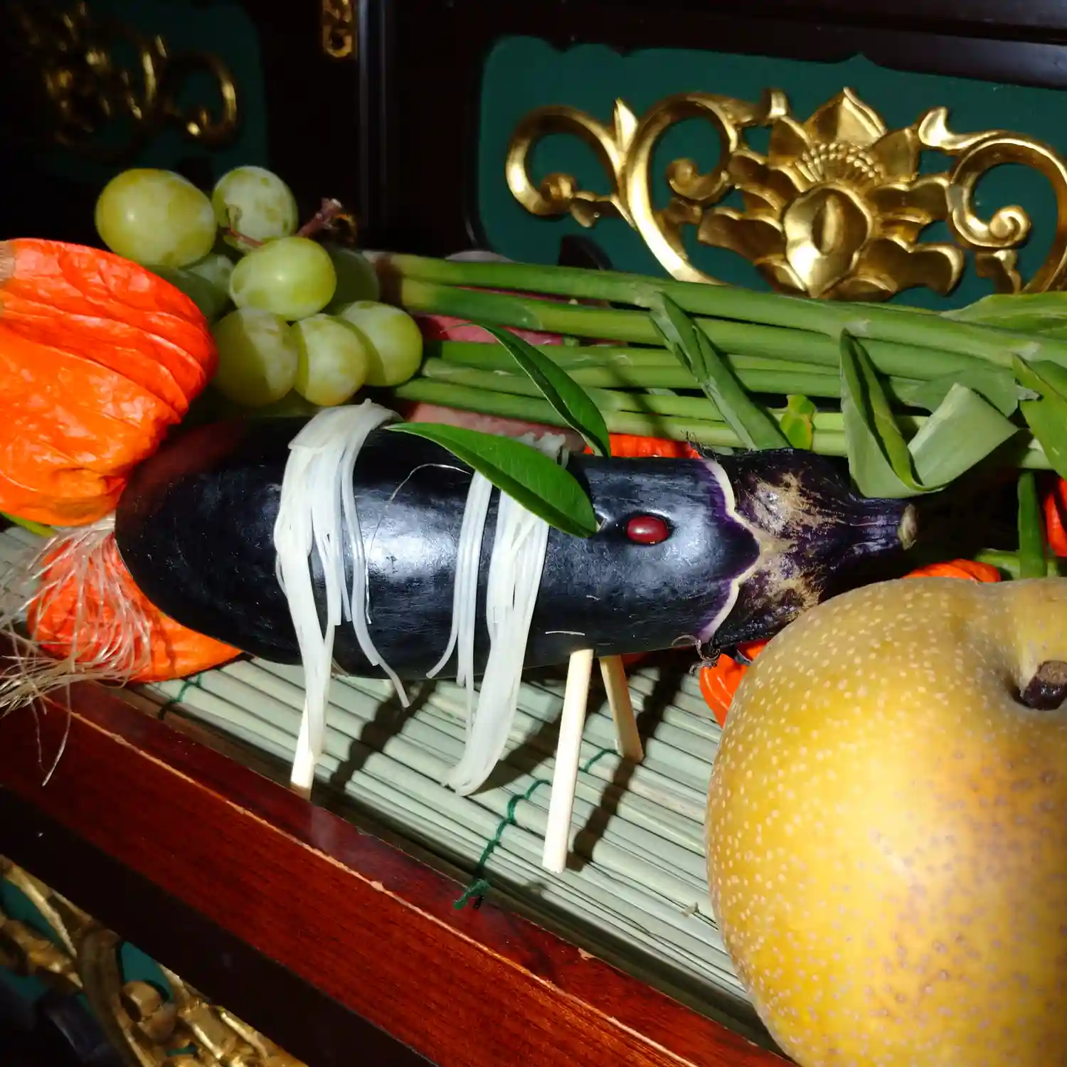 茄子ときゅうりにお供え物も上…