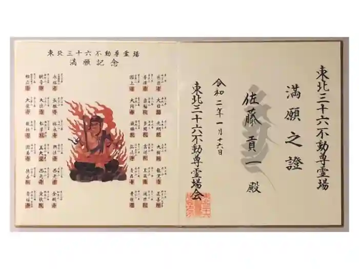 東北三十六不動尊霊場 満願之證